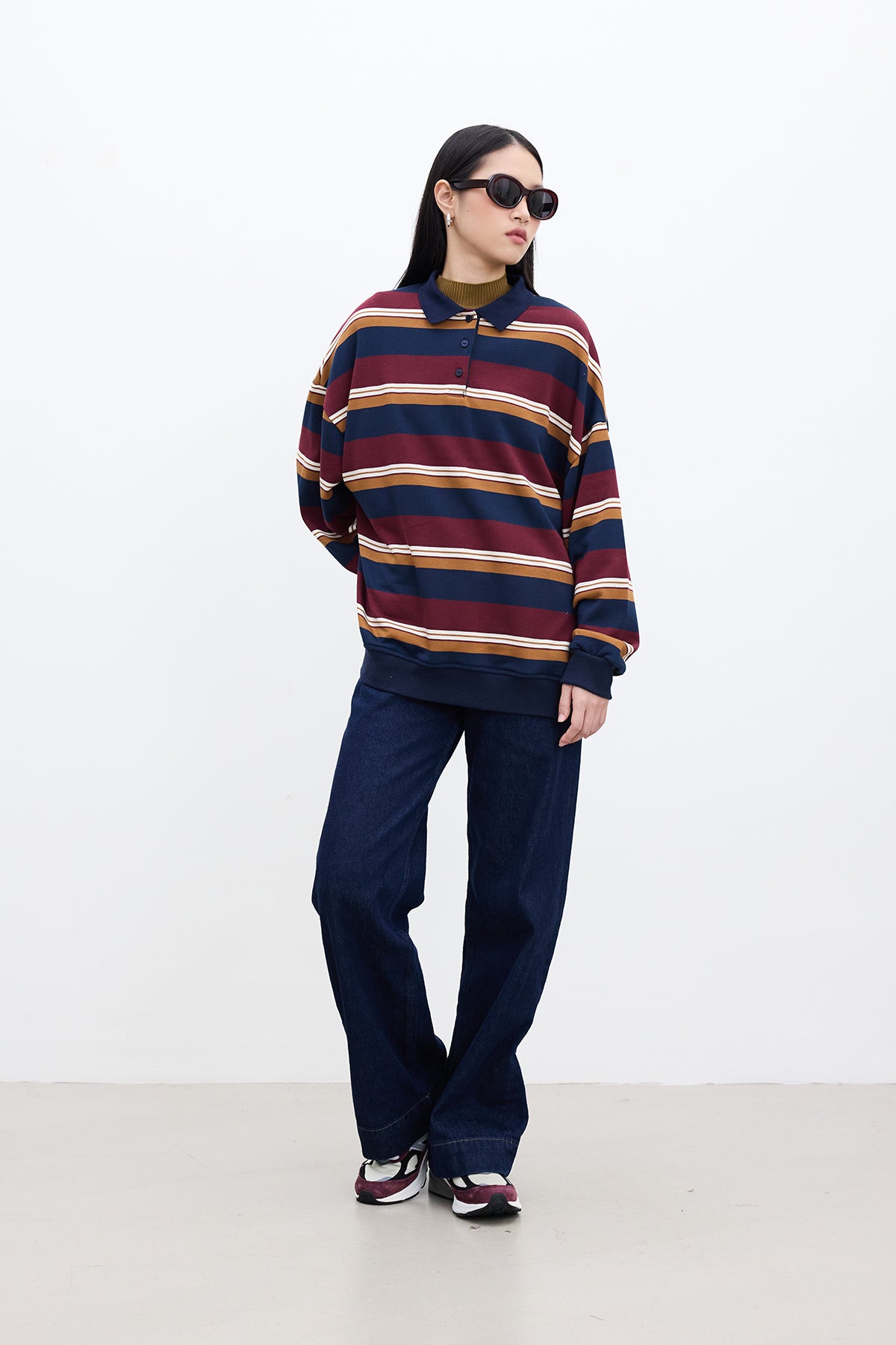 Polo Collar Oversized Sweatshirt Burgundy