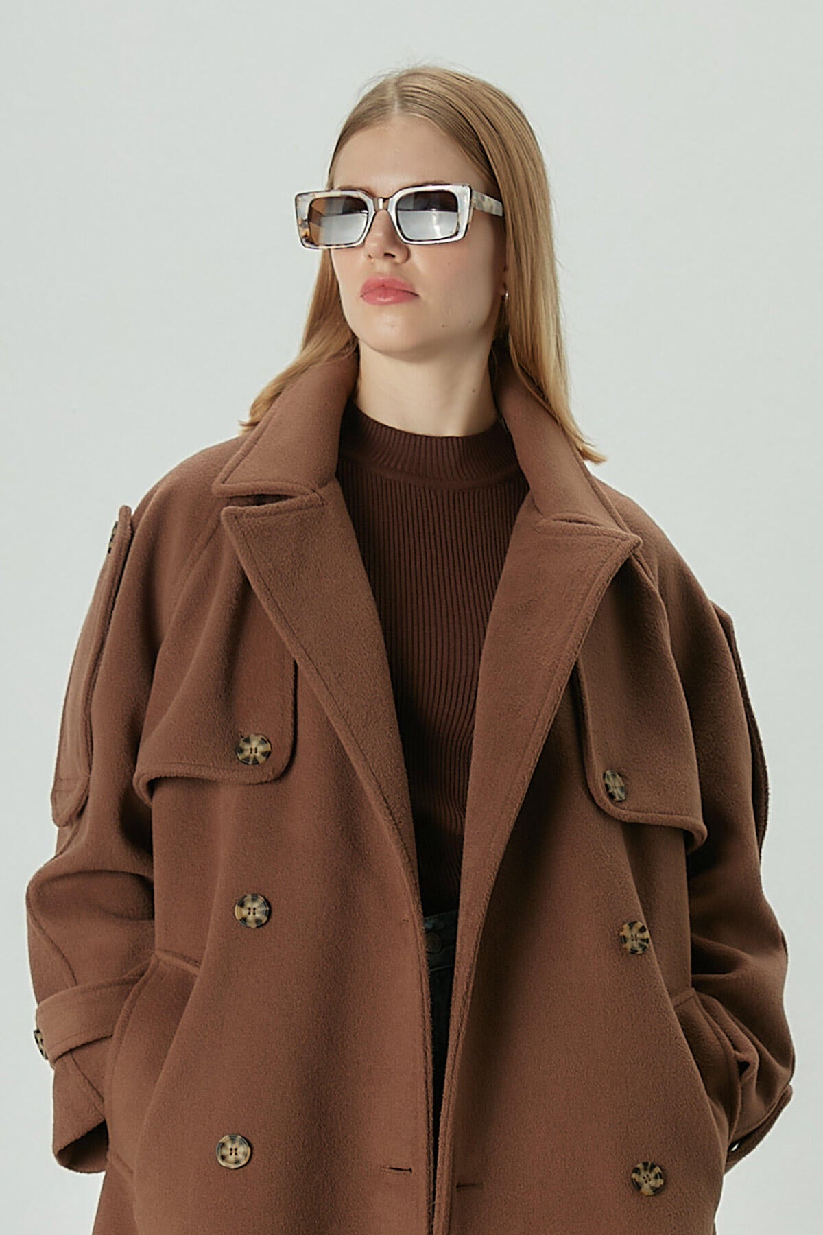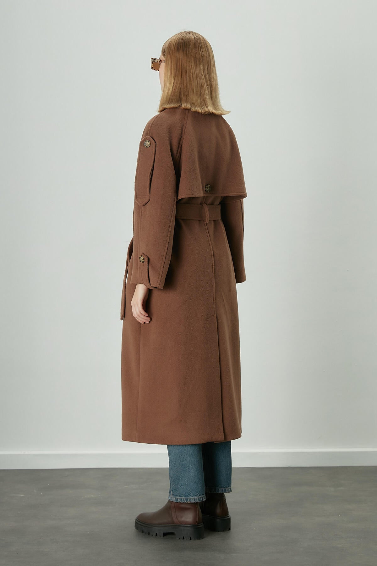Made from high-quality cachet fabric, this coat is fully lined, ensuring warmth and comfort in cooler weather. The double-breasted closure adds a classic touch, while its mid-length cut offers versatility and style. Designed with flap pockets for functionality and a belt to cinch the waist, this trench coat enhances any silhouette. Epaulettes and a storm flap detail pay homage to the traditional trench, making it a sophisticated choice for both formal and casual occasions.