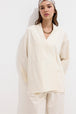 Crafted from specially textured fabric, this kimono features an envelope closure, pocket details, and both tie and button closures. It has a low shoulder design and is unlined.