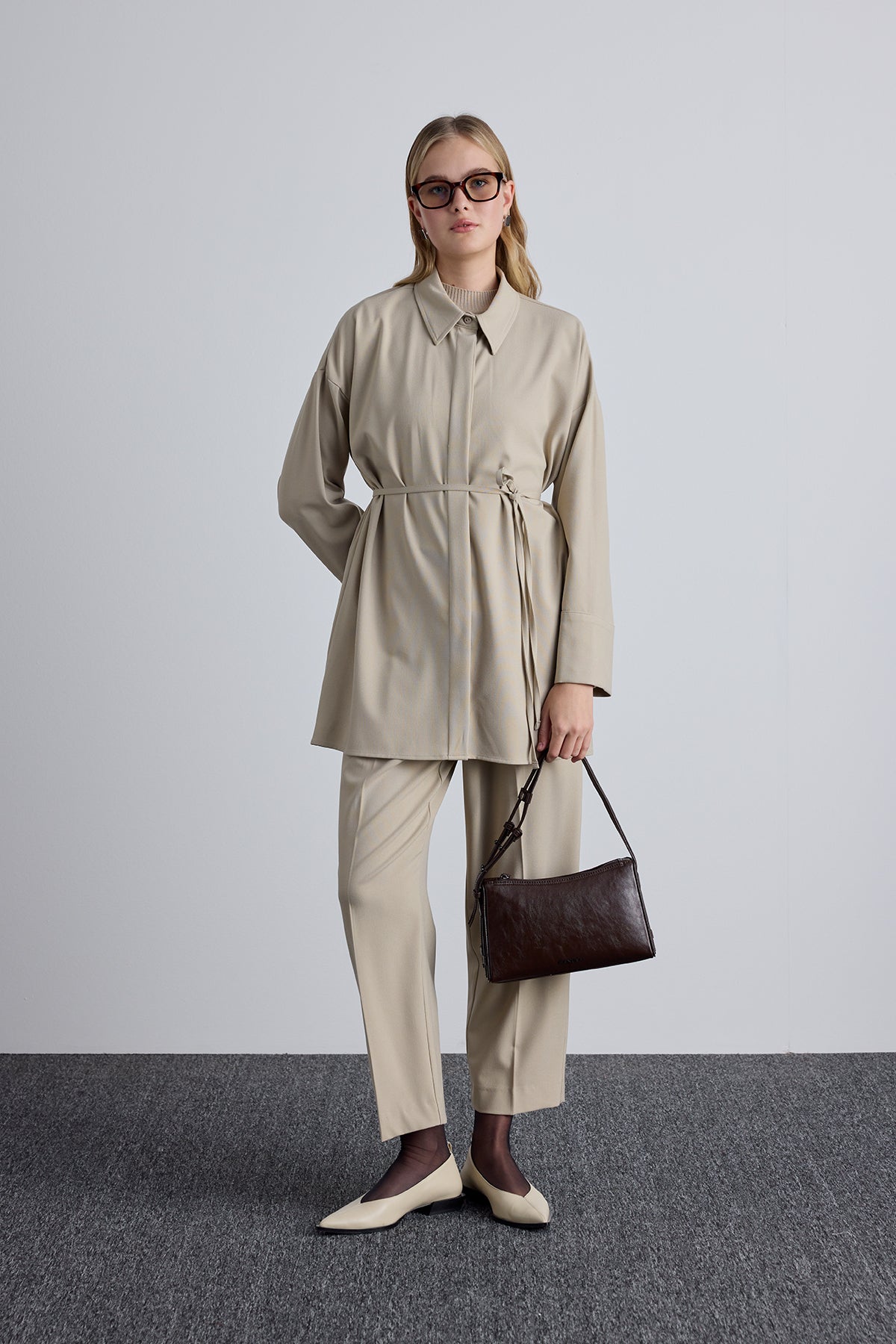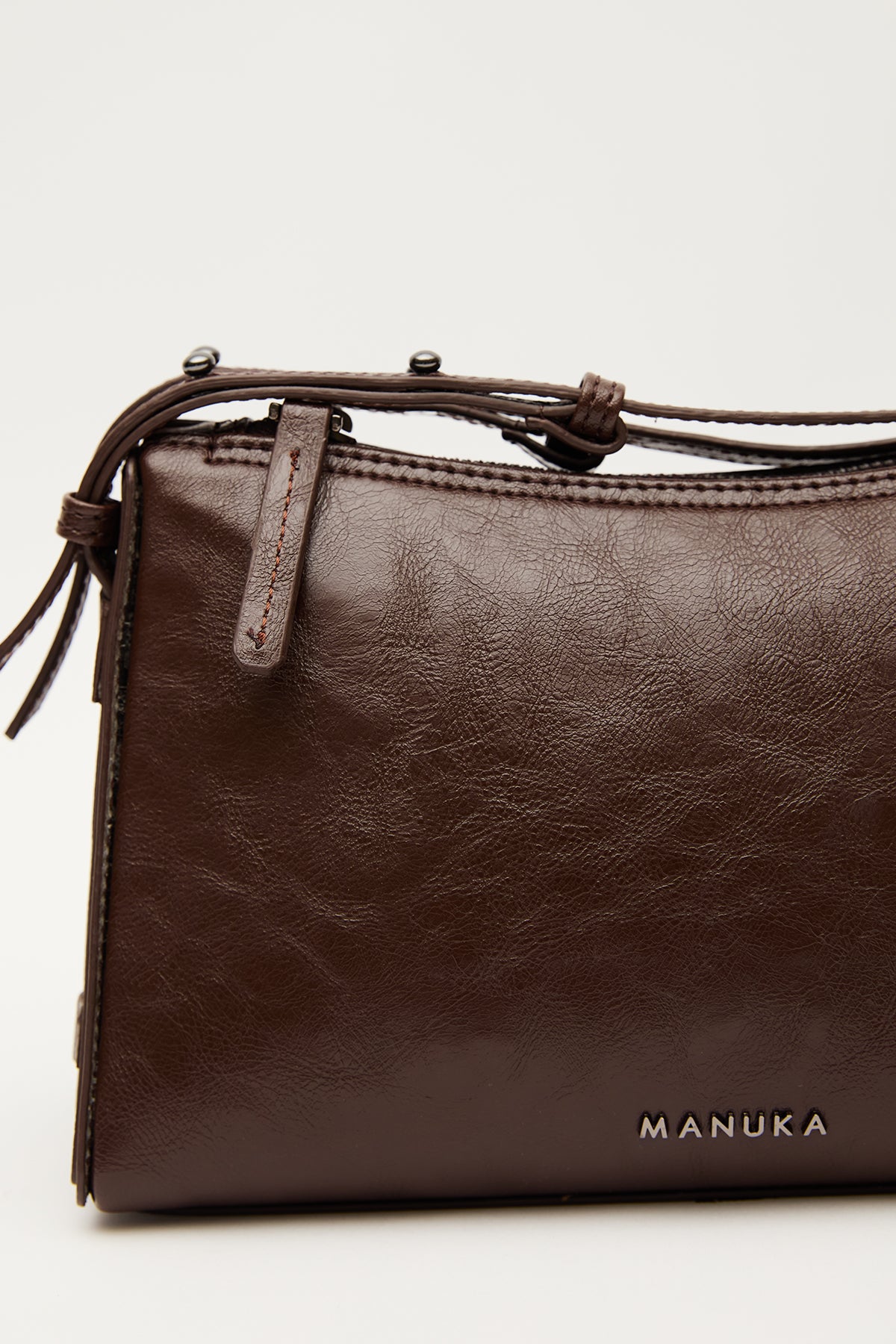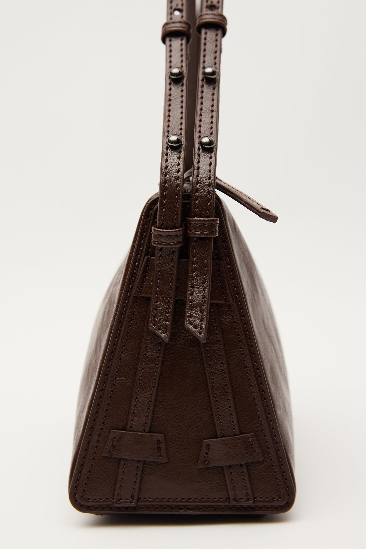 Prism Shaped Faux Leather Bag Dark Brown