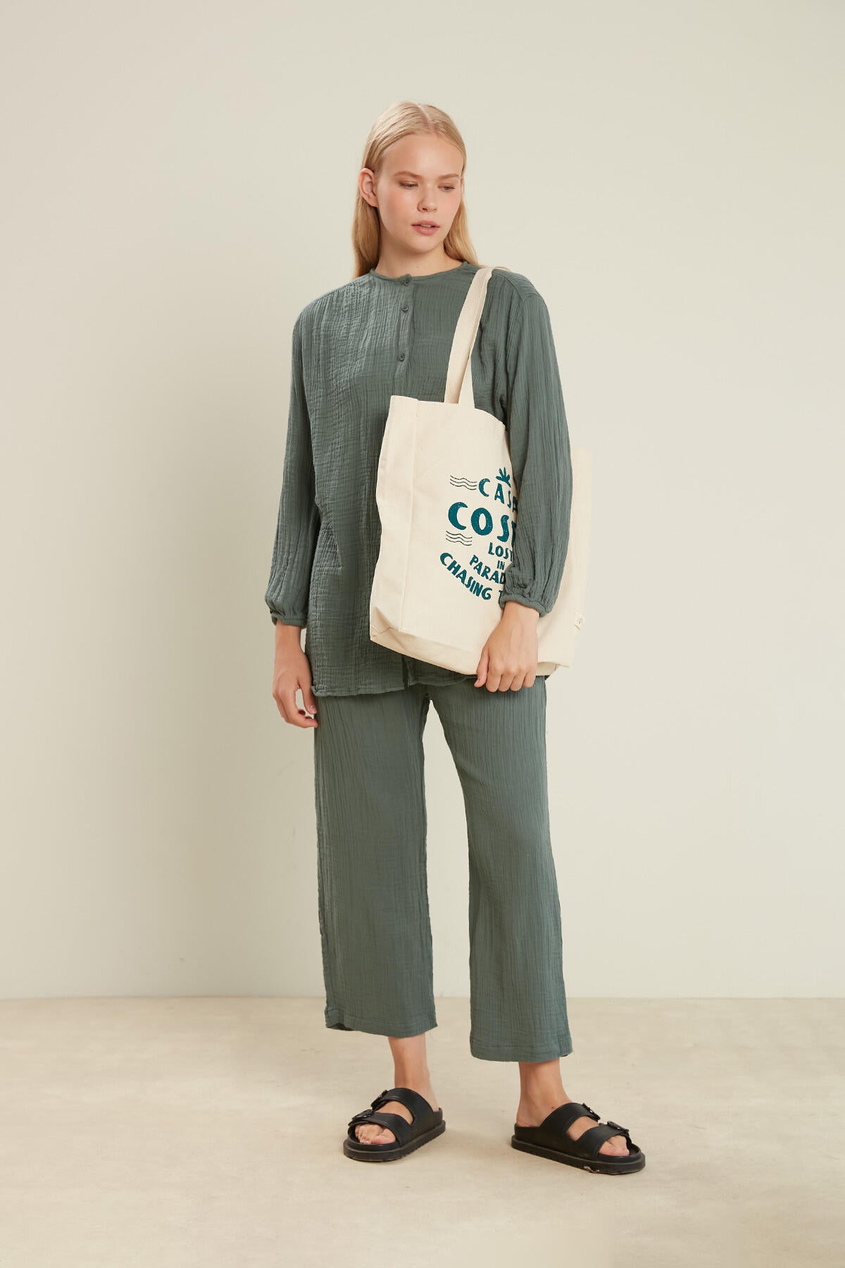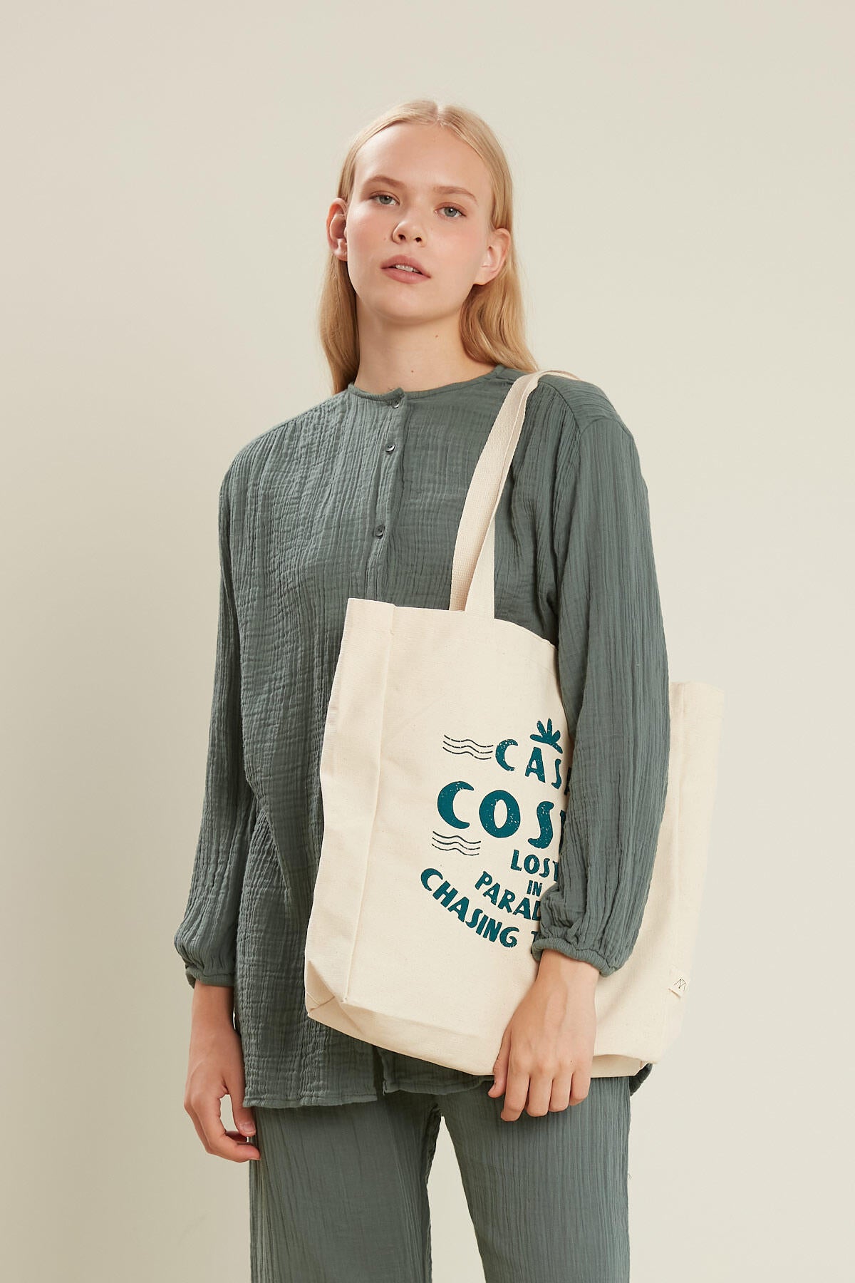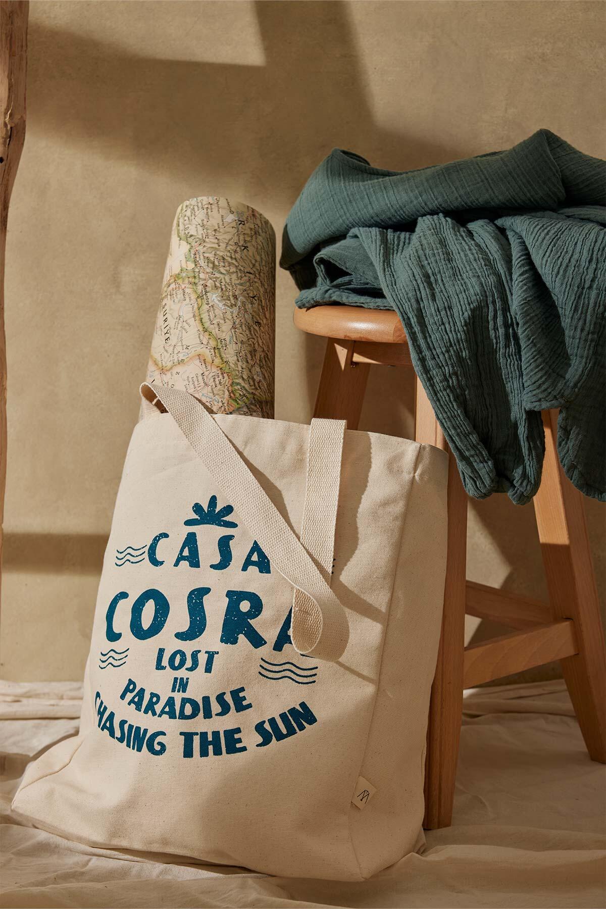 Printed Canvas Bag Casa Teal