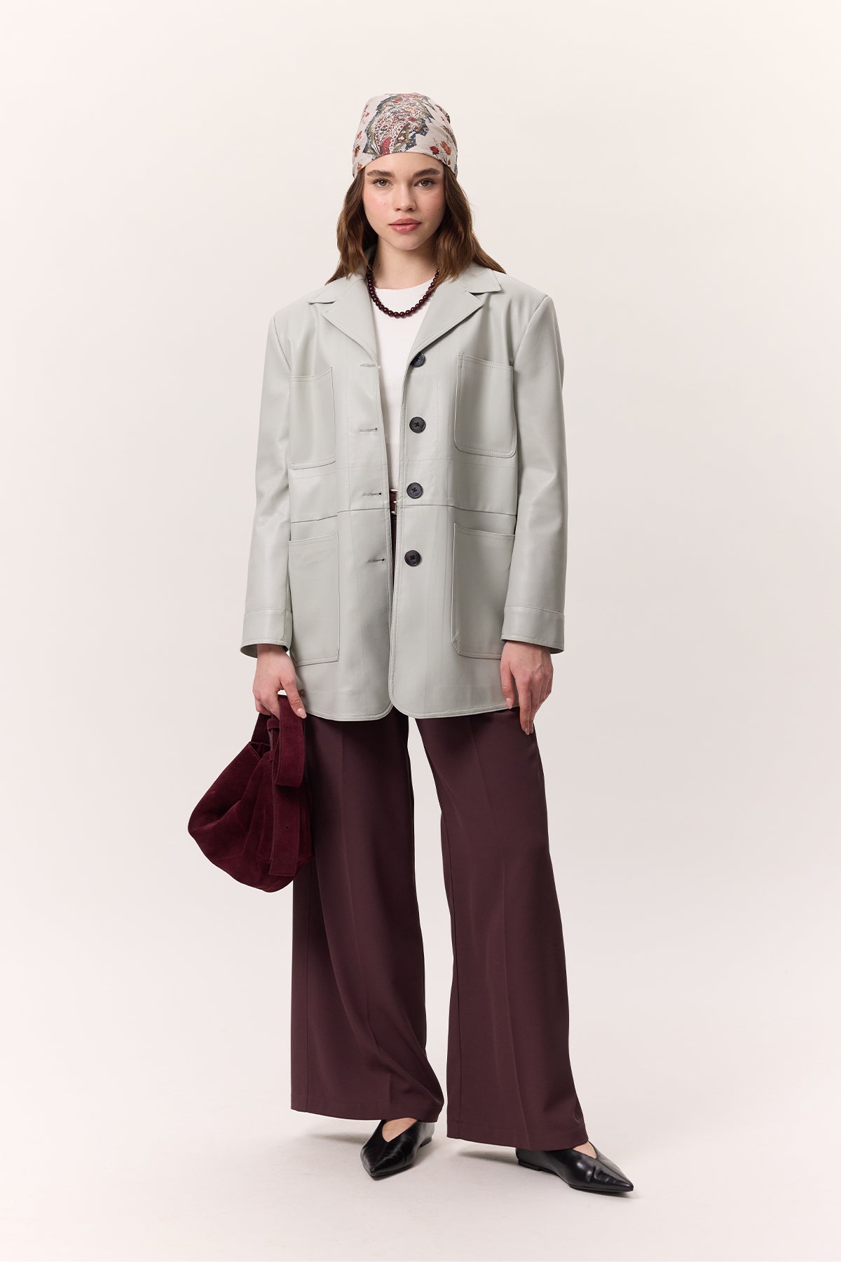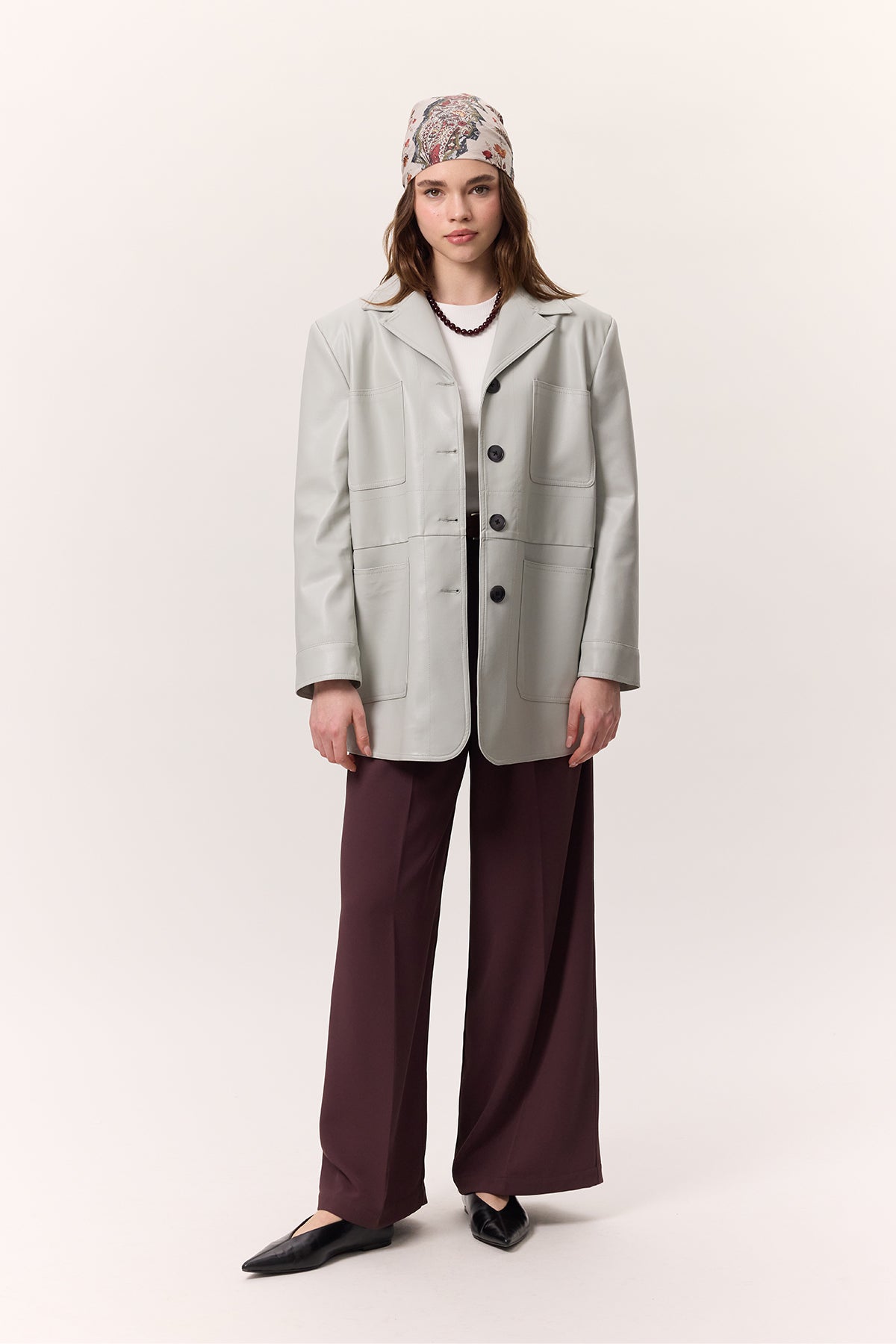 Retro Faux Leather Jacket Blue