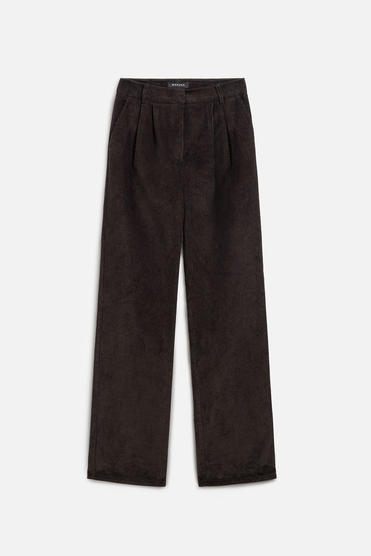 Ribbed Velvet Straight Fit Trousers Dark Brown