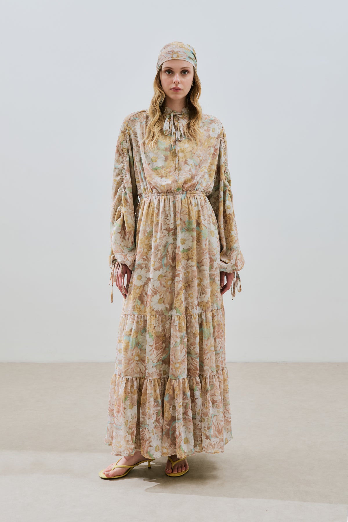 Ruched Chiffon Maxi Dress Blossoms