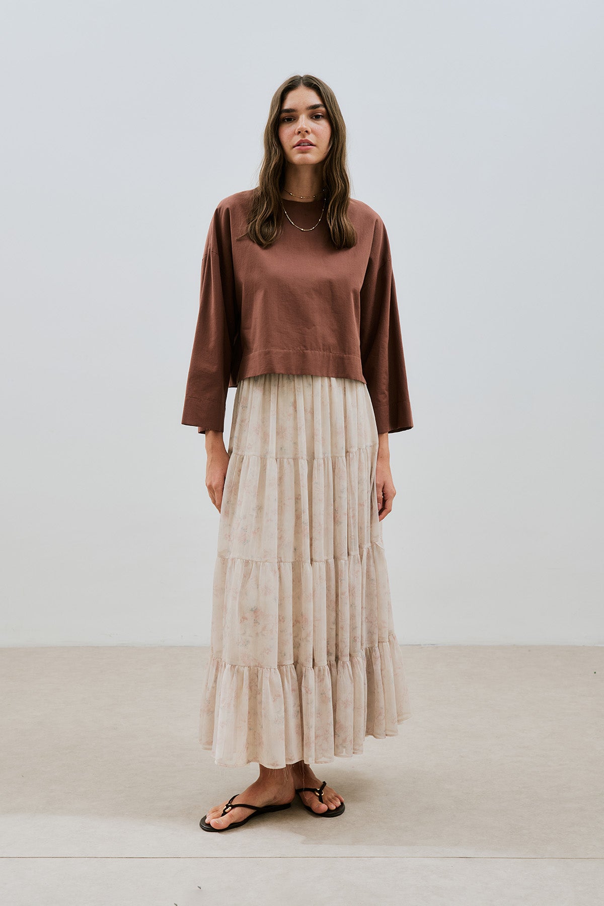 Ruched Chiffon Maxi Skirt Blush