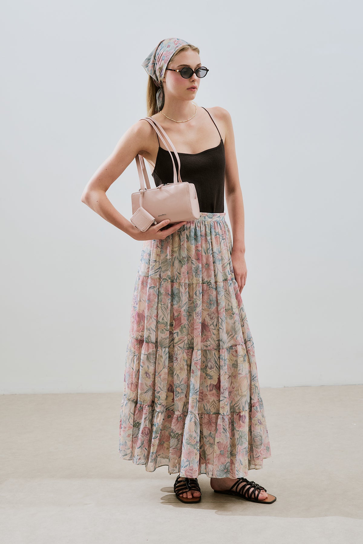 Ruched Chiffon Maxi Skirt Pastel Floral