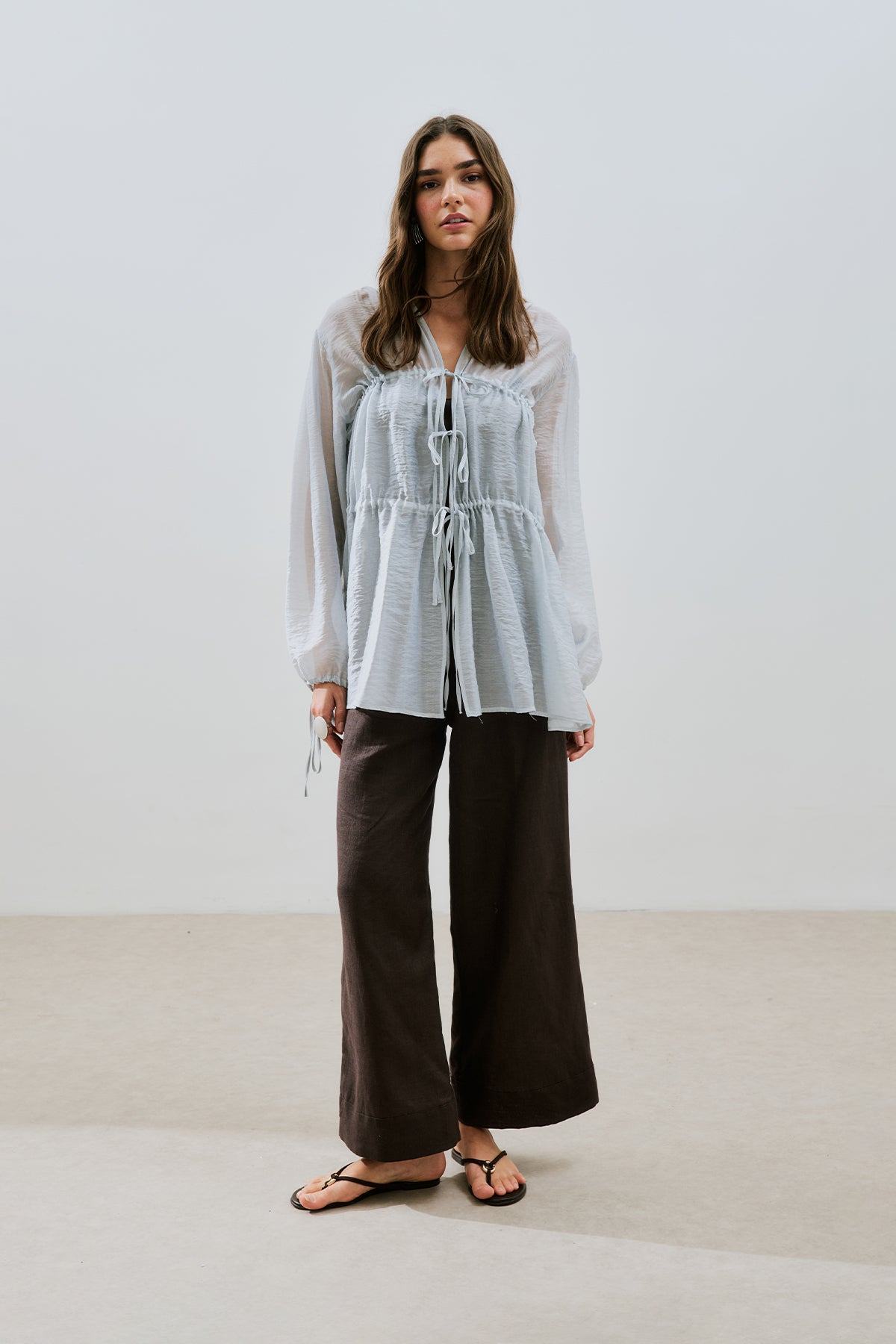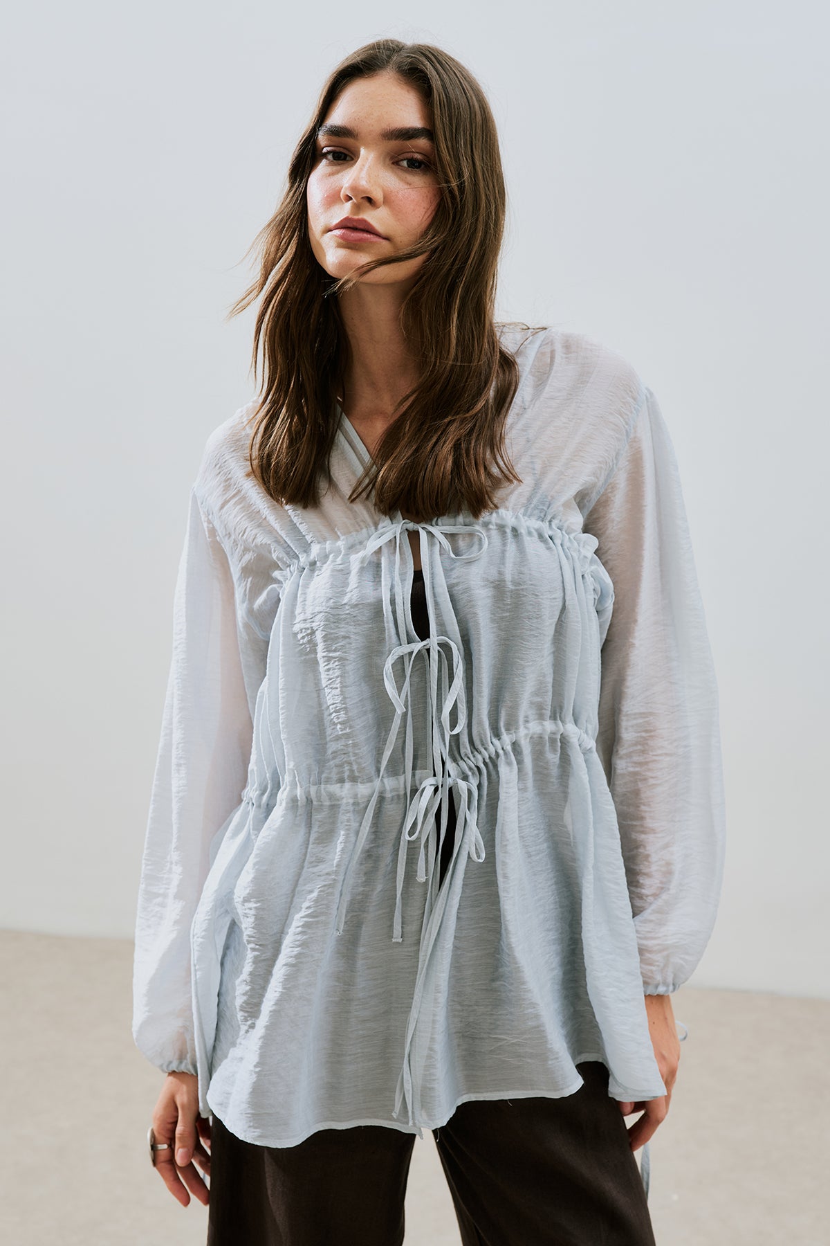 Ruched Tie Blouse Blue