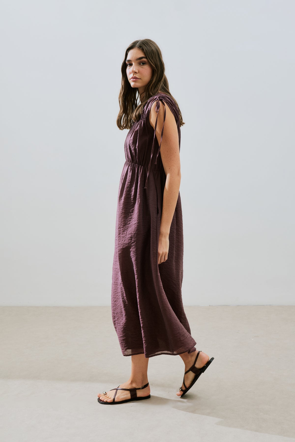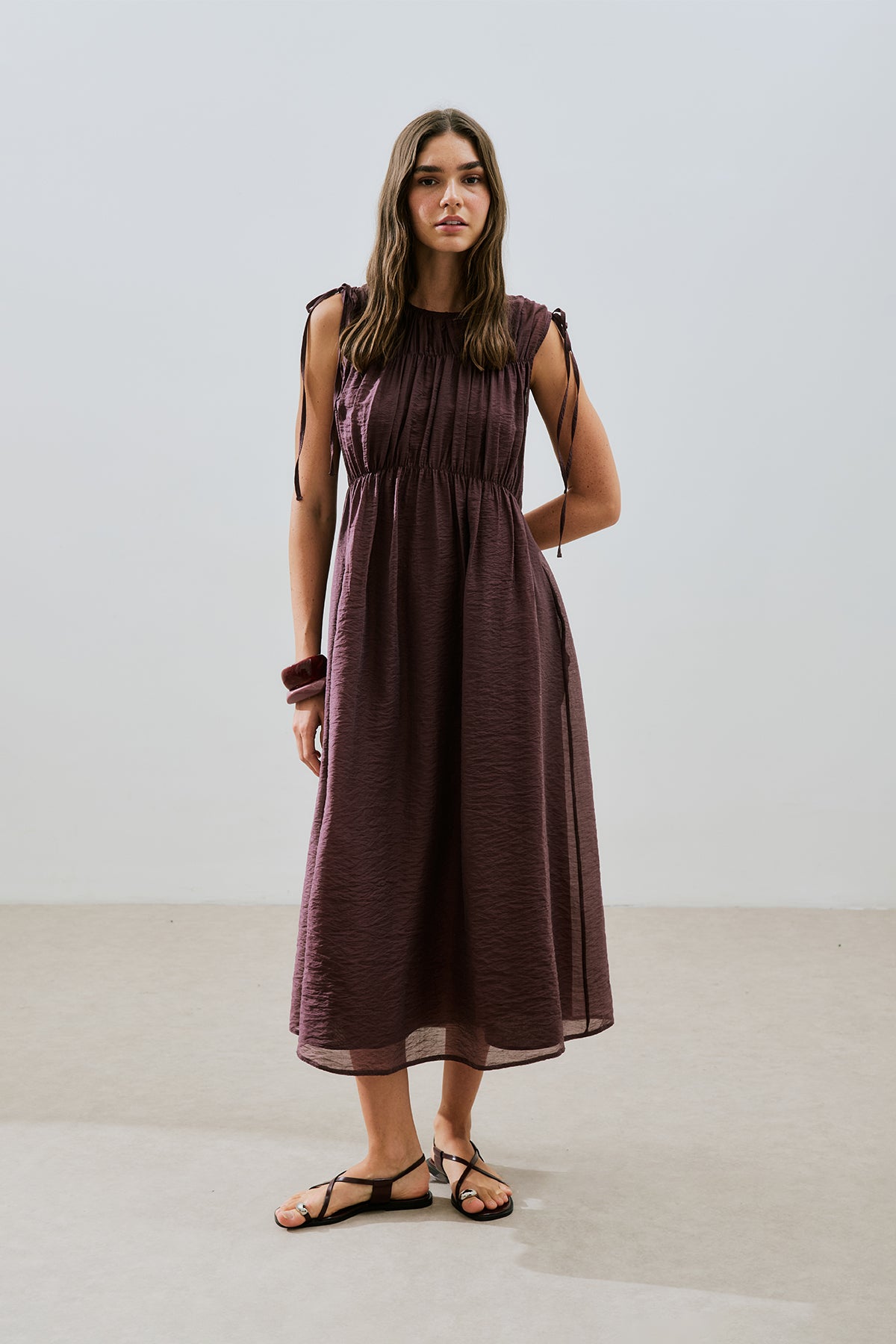 Ruched Tie Dress Burgundy