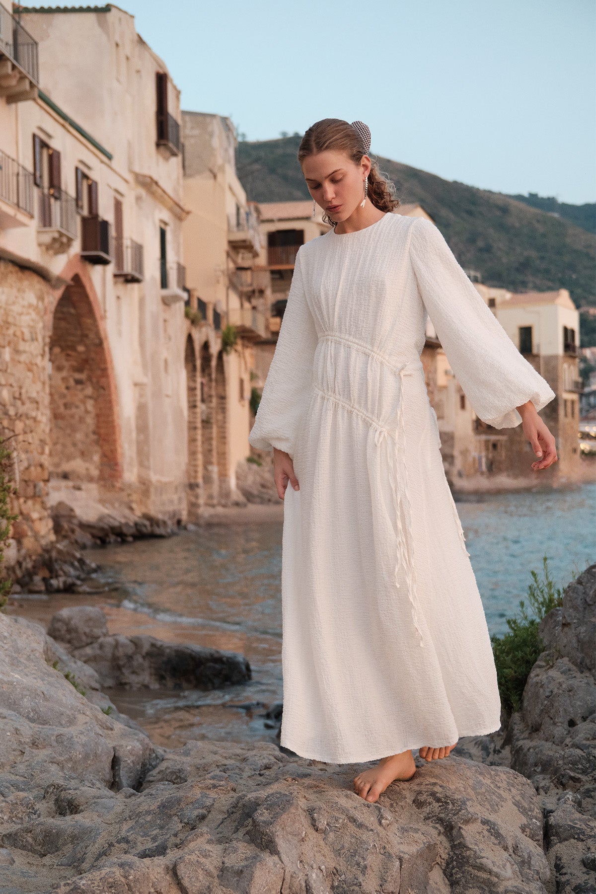 Size S/M: Chest 47 cm, Sleeve Length 61 cm, Front Length 141 cm, Back Length 144 cm, Hem 128 cm