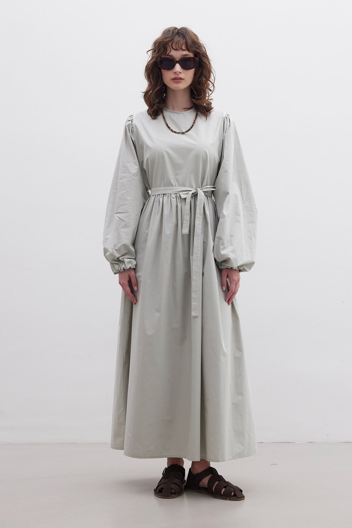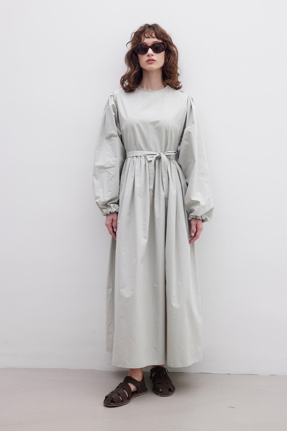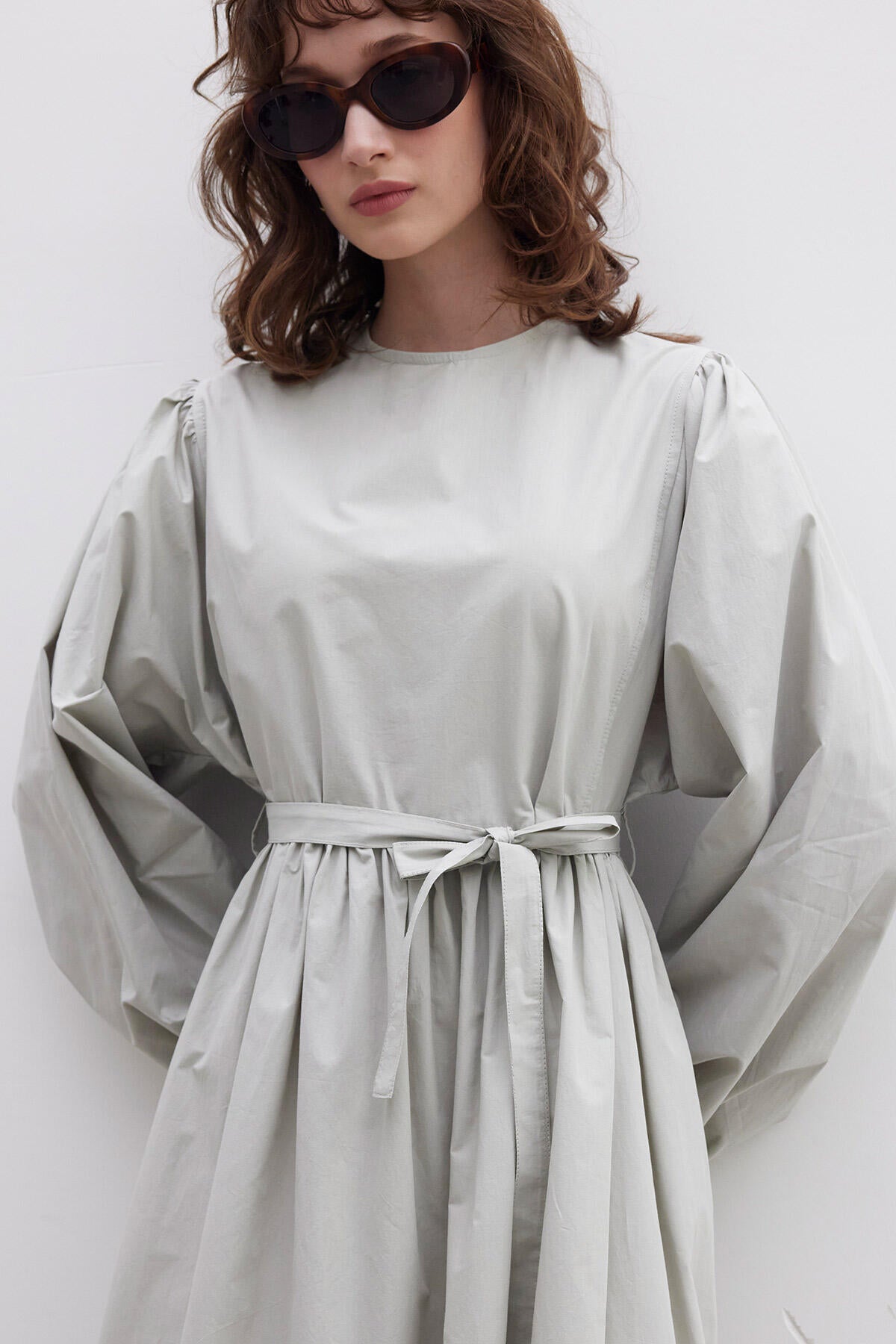 Regular fit, gathered waist detail, elasticated cuffs, round neck, keyhole button at back, unlined cotton poplin fabric.