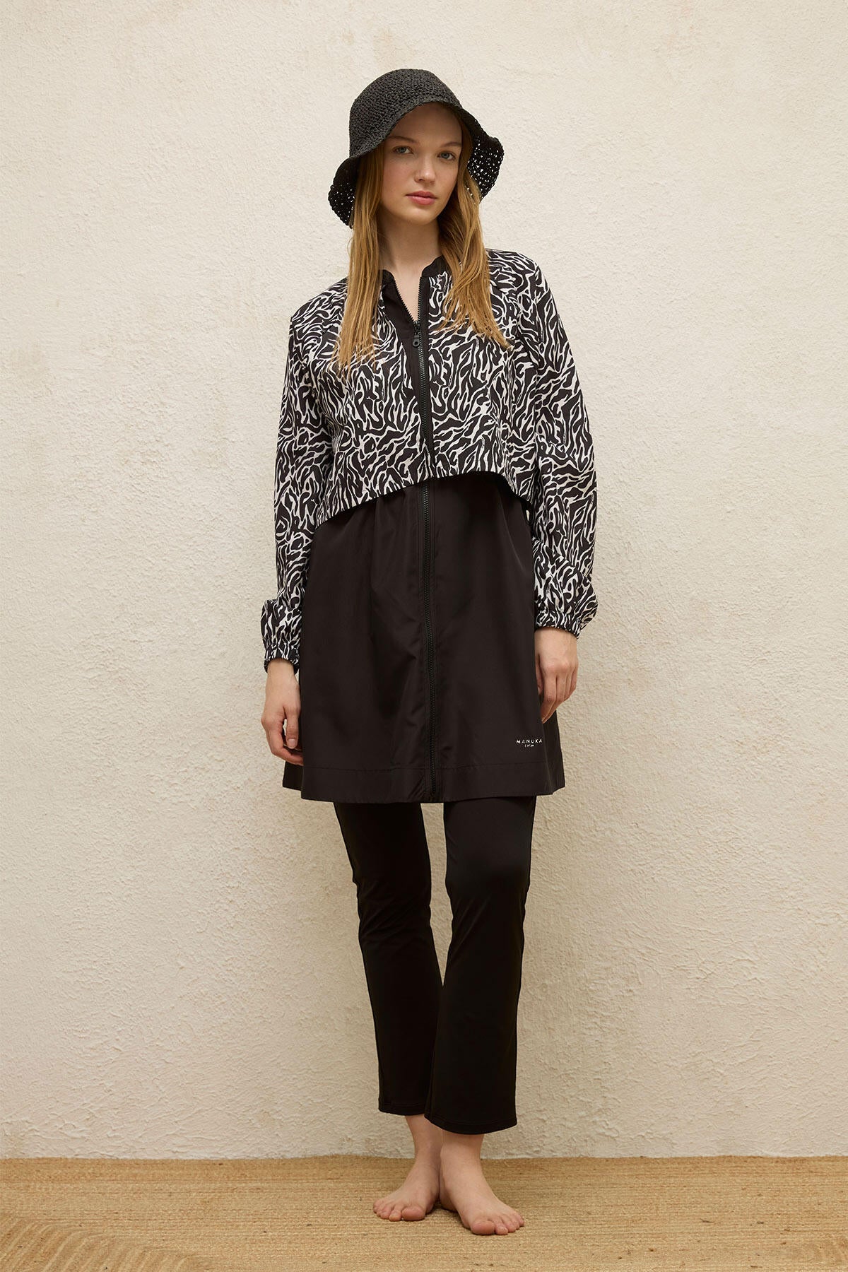 3 Piece Modest Swimsuit Set With Windbreaker Zebra