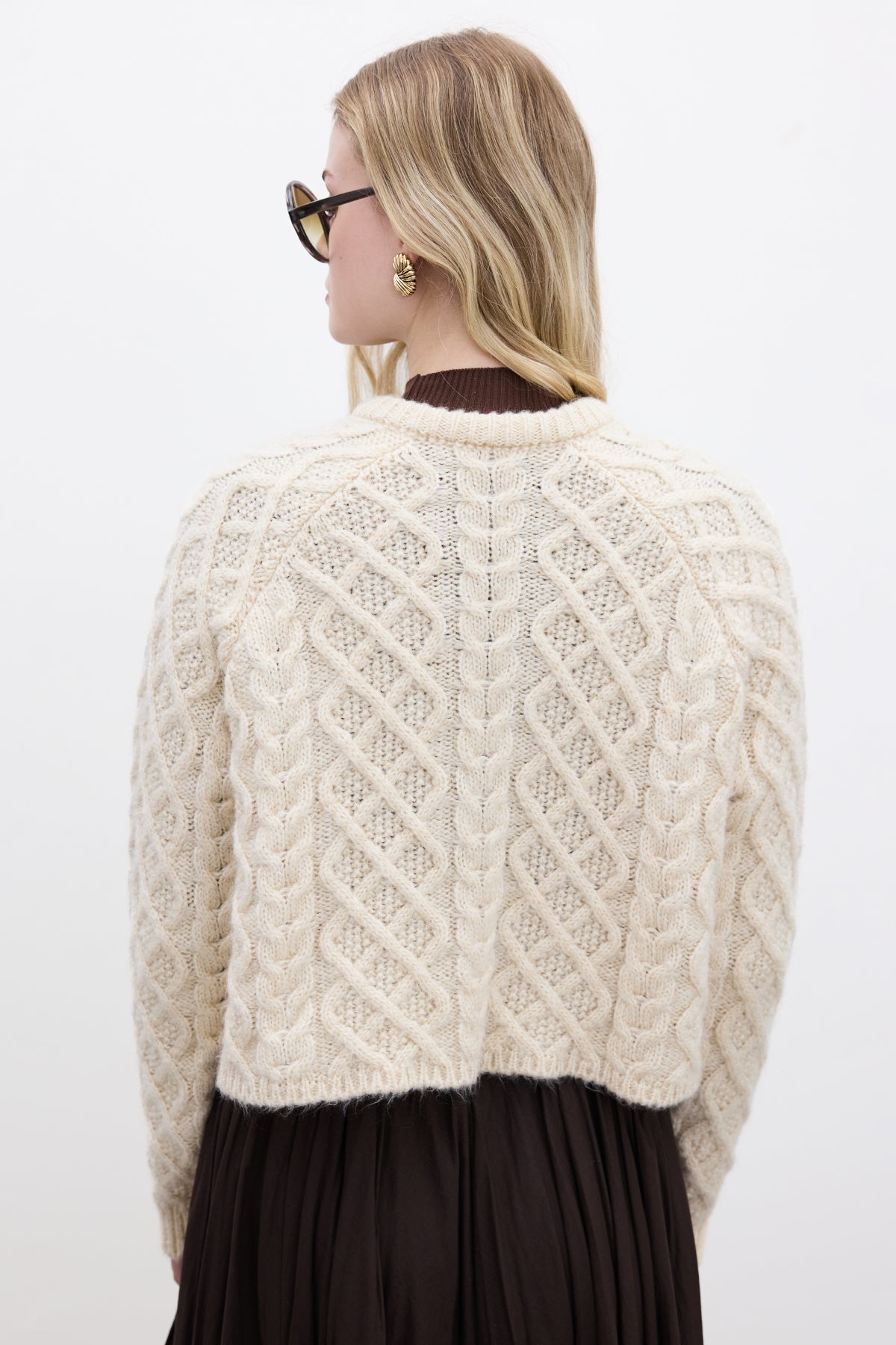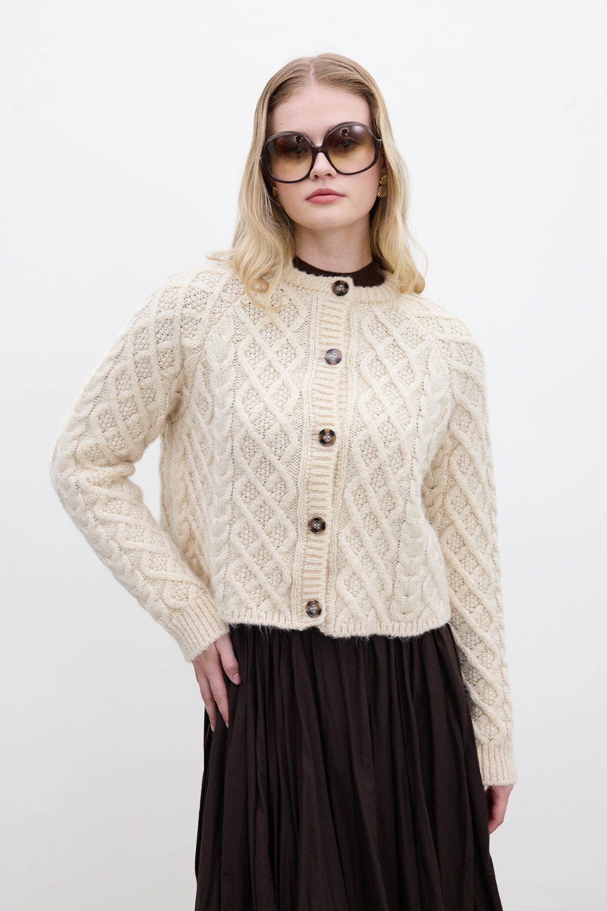 Cable-Knit Cardigan Beige