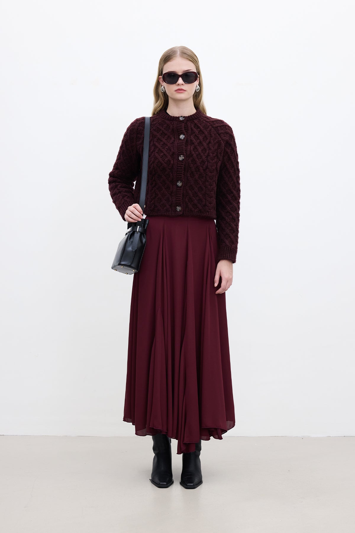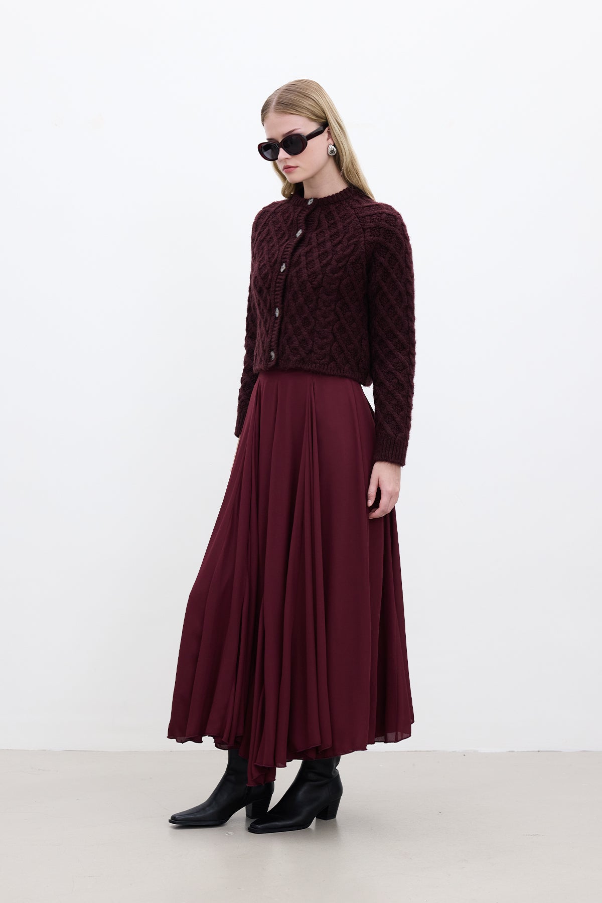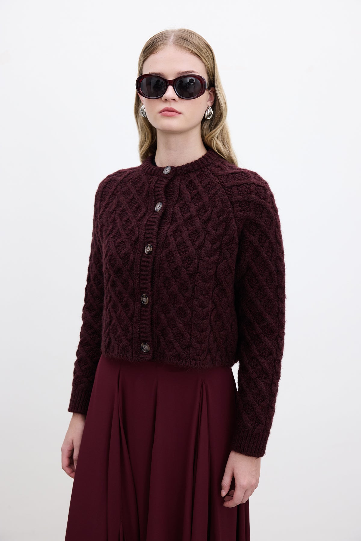 Cable-Knit Cardigan Burgundy