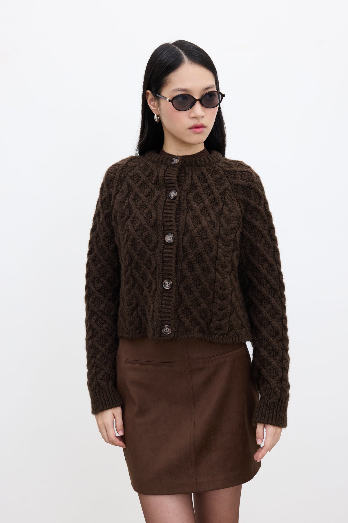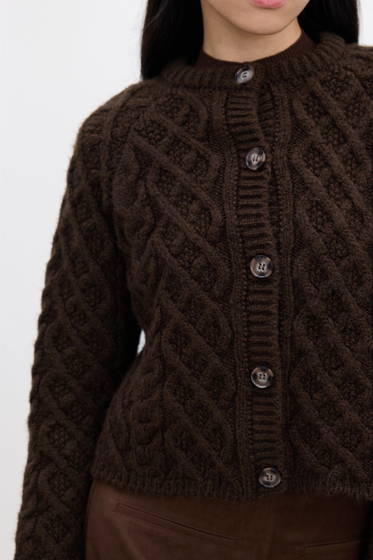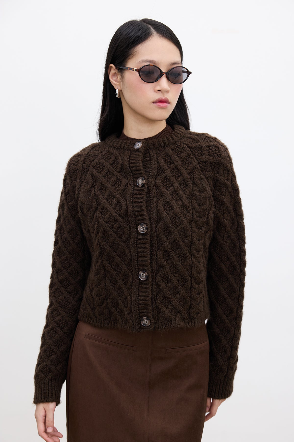 Cable-Knit Cardigan Brown