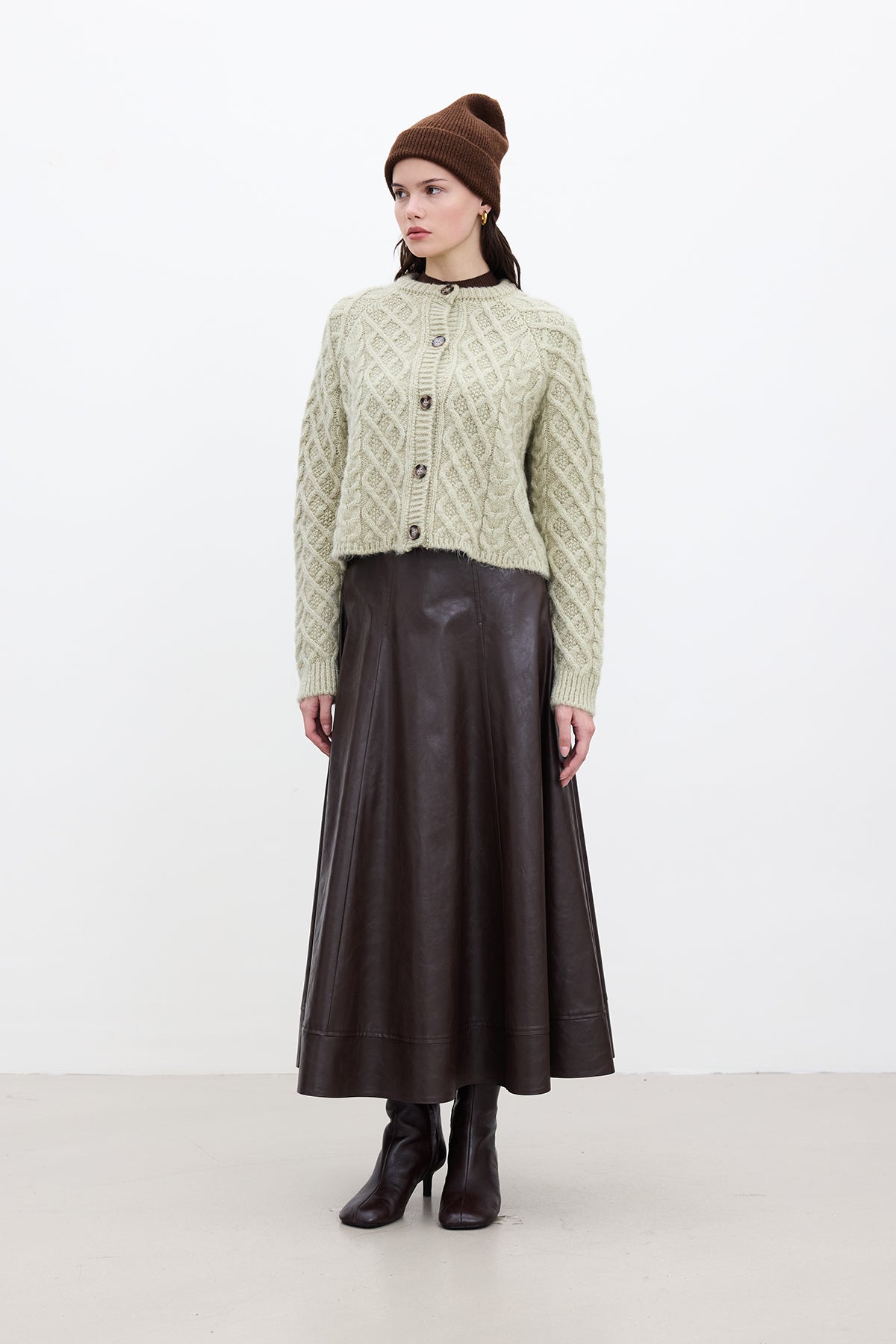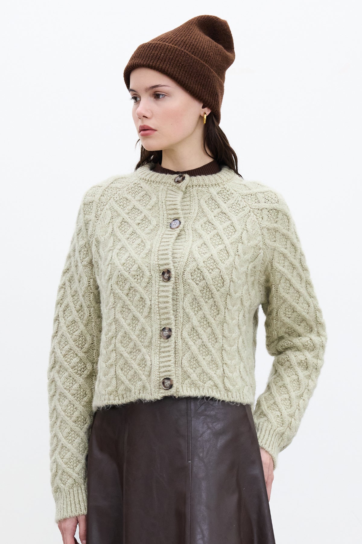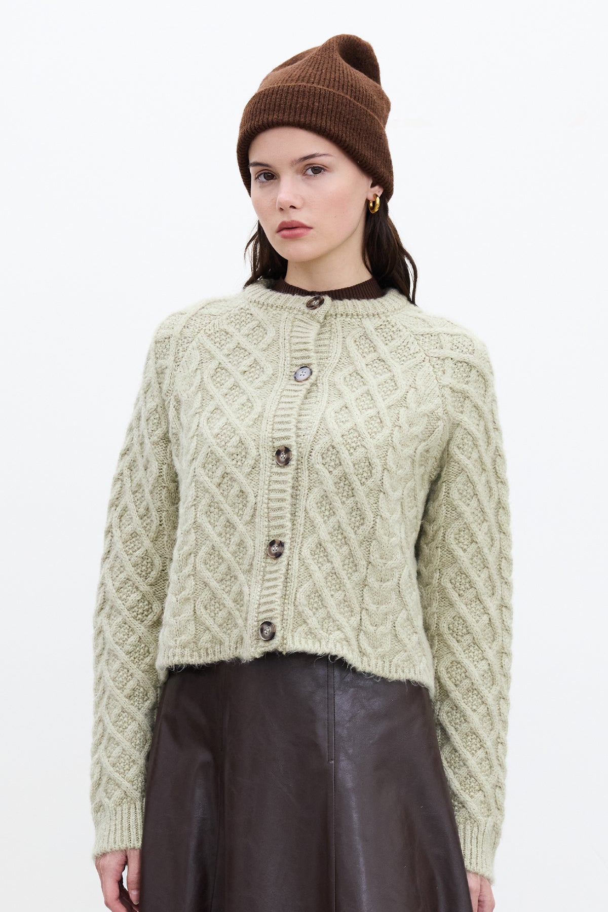 Cable-Knit Cardigan Soft Green