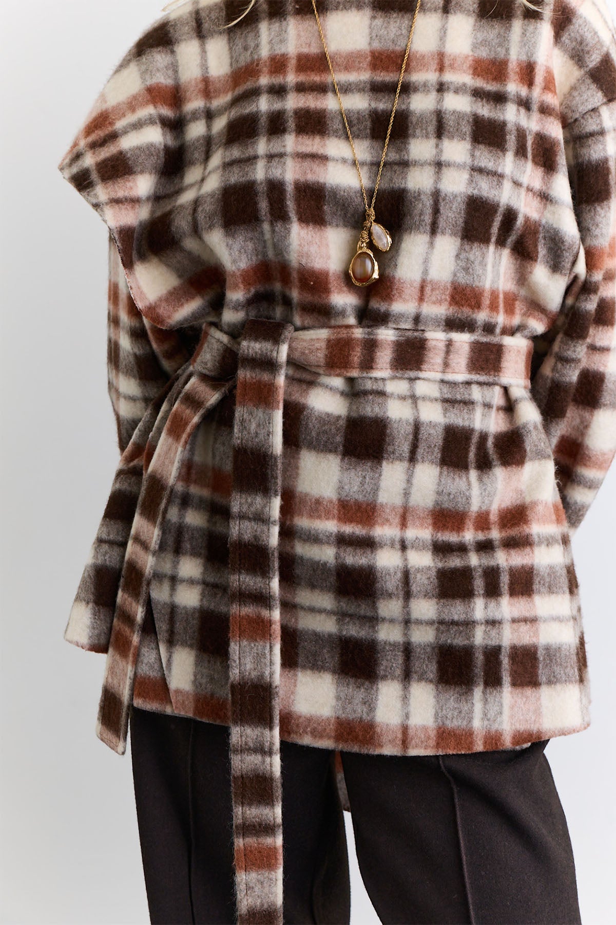 Regular kalıp, yuvarlak yaka, uzun kol, şal detaylı, ara boy, düğme kapamalı.