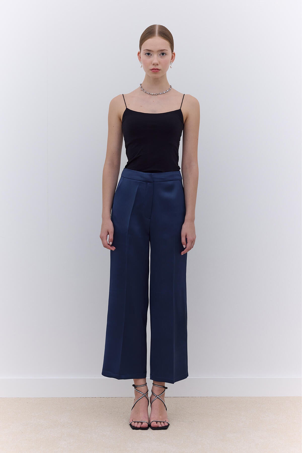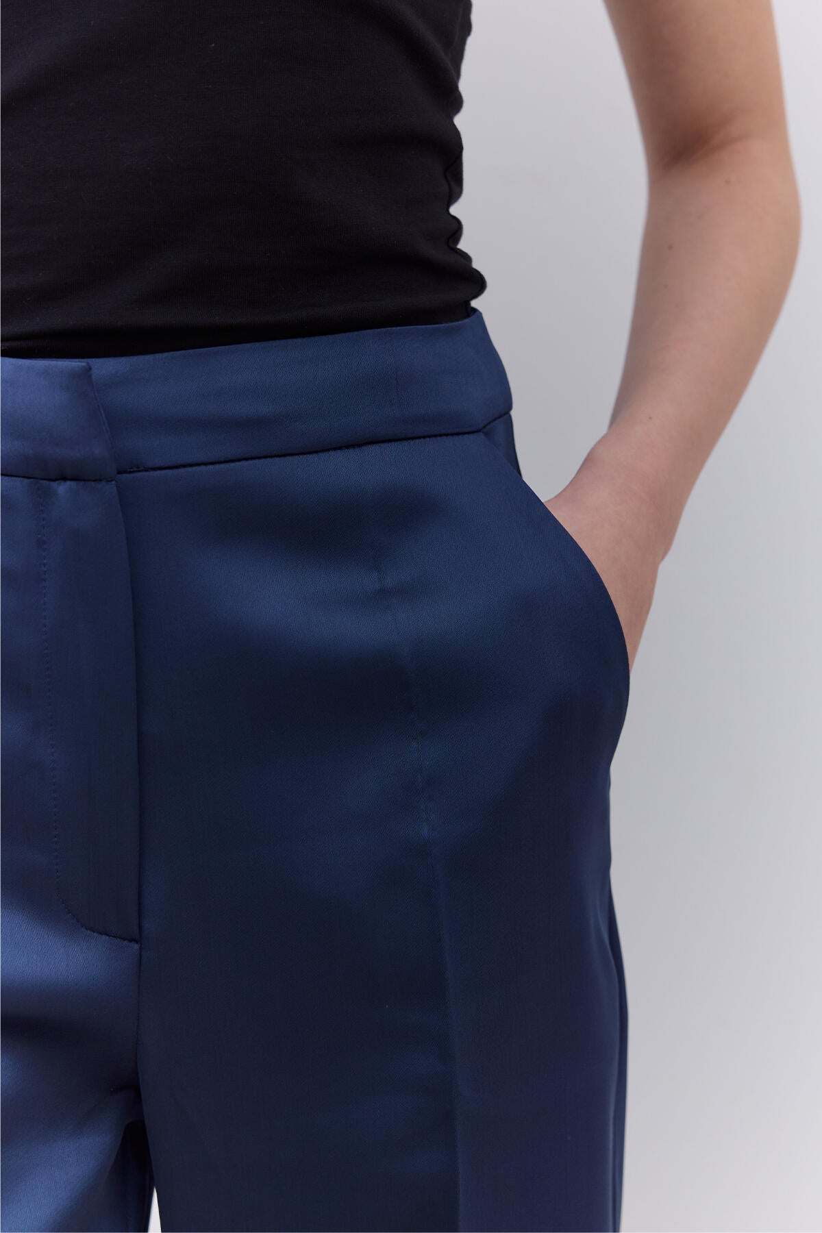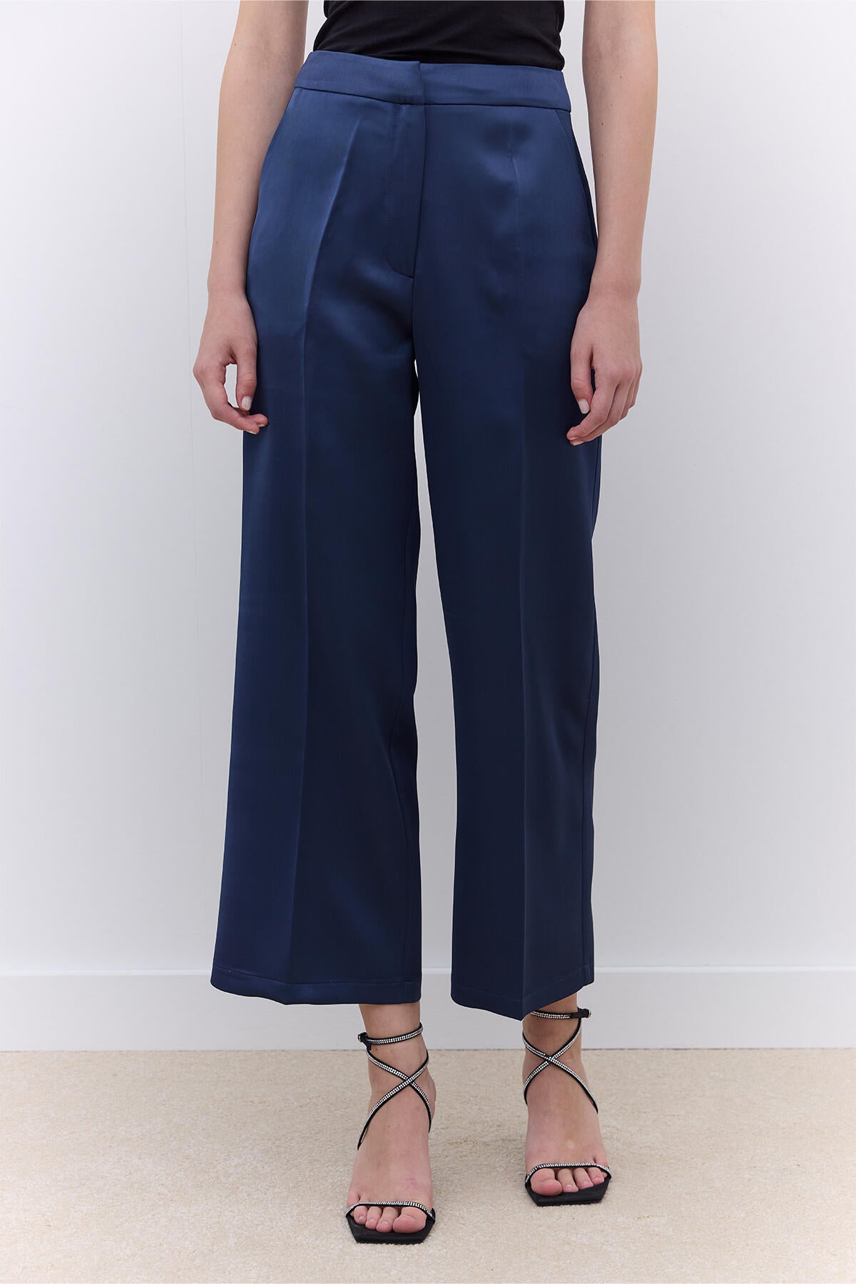 Satin Straight Leg Trousers Navy Blue