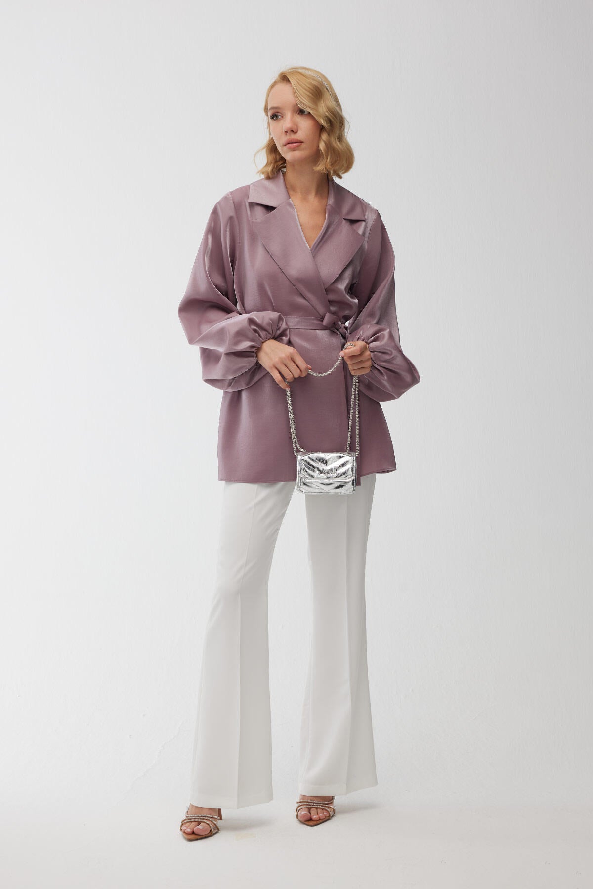 Crafted from luxurious satin fabric, these pants ensure a smooth and glossy finish that catches the light beautifully. Featuring a zipper closure for a seamless fit, and a front placket detail that adds an extra touch of sophistication. The flared, bell-bottom silhouette pays homage to the iconic Spanish flare style, offering a flattering and elongated leg line.