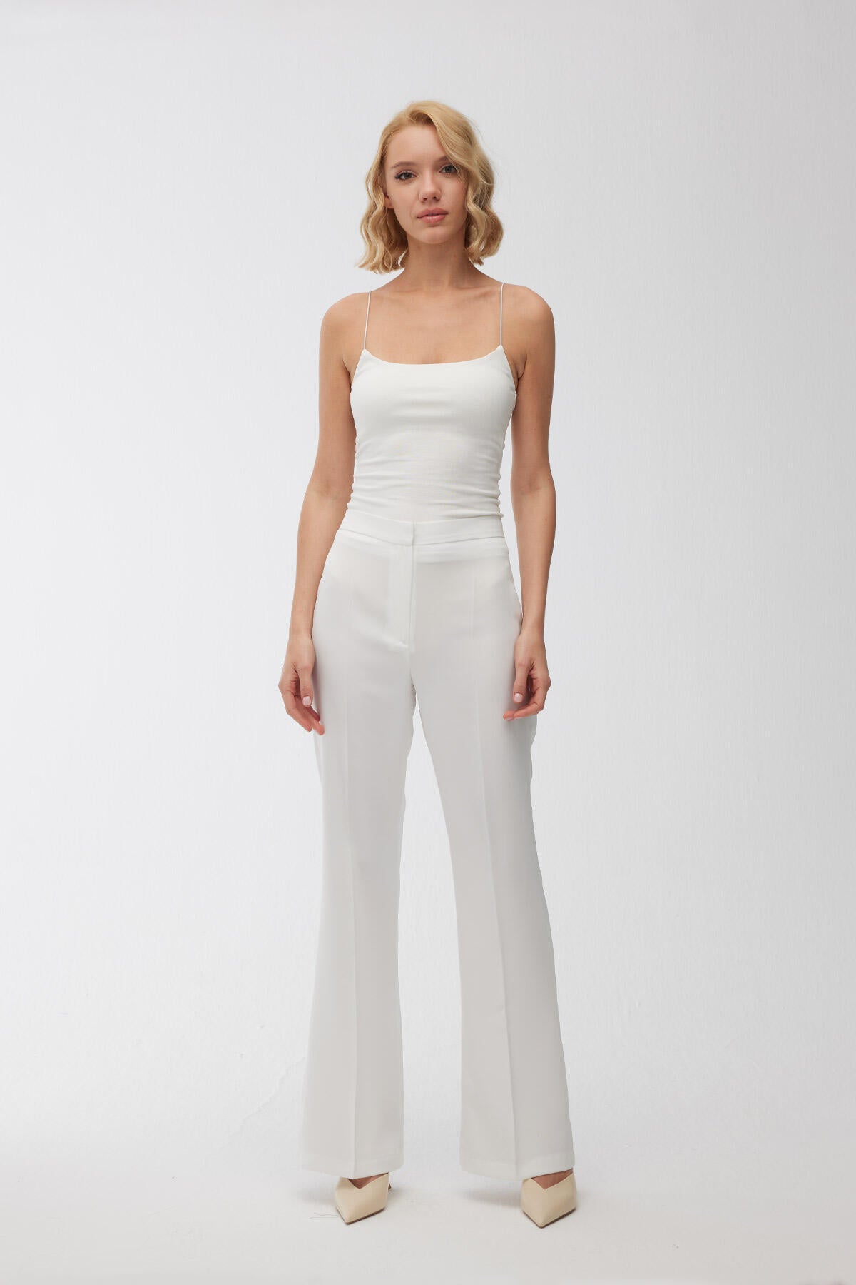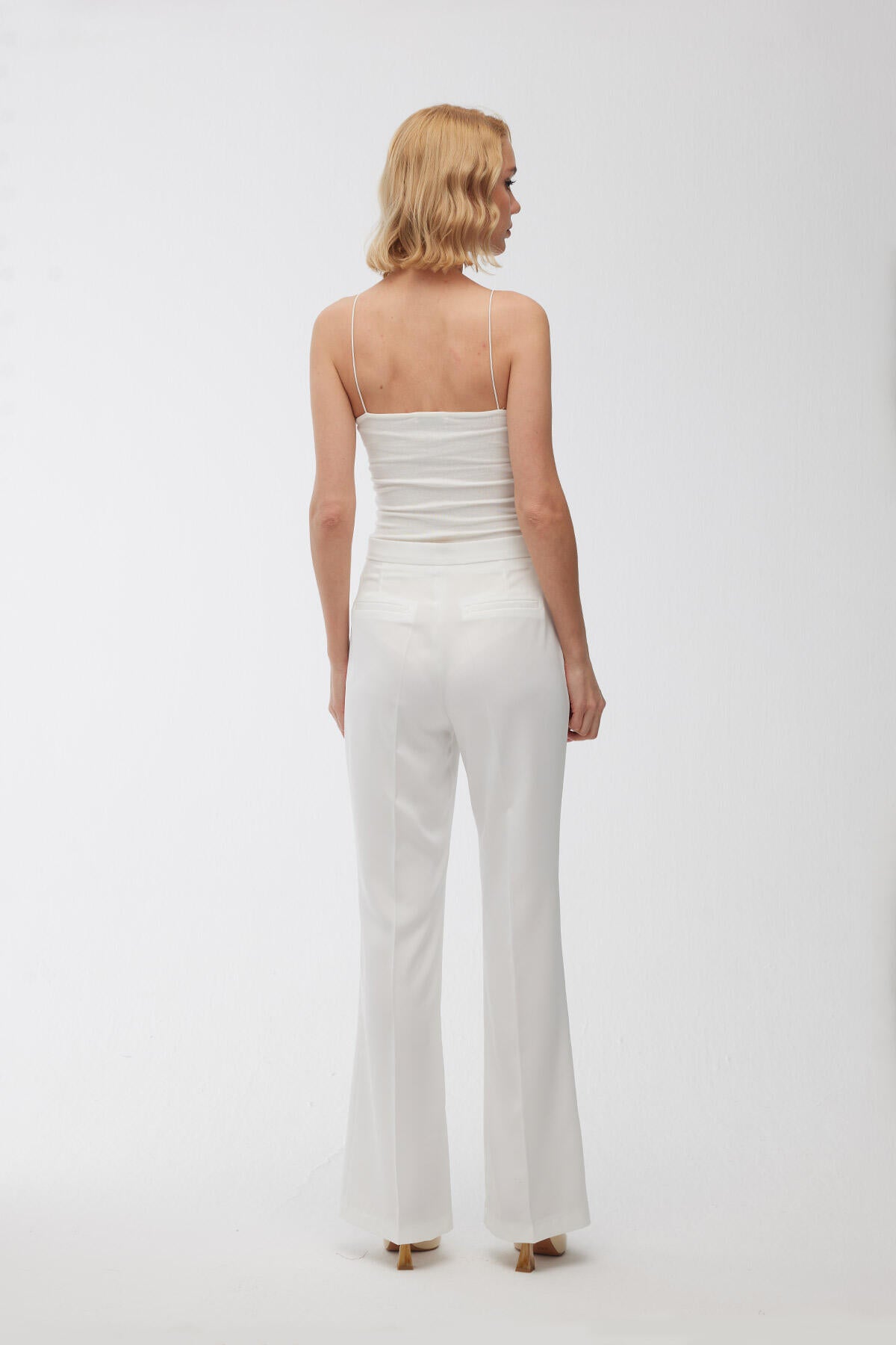 Satin Bell Bottom Trousers Ecru