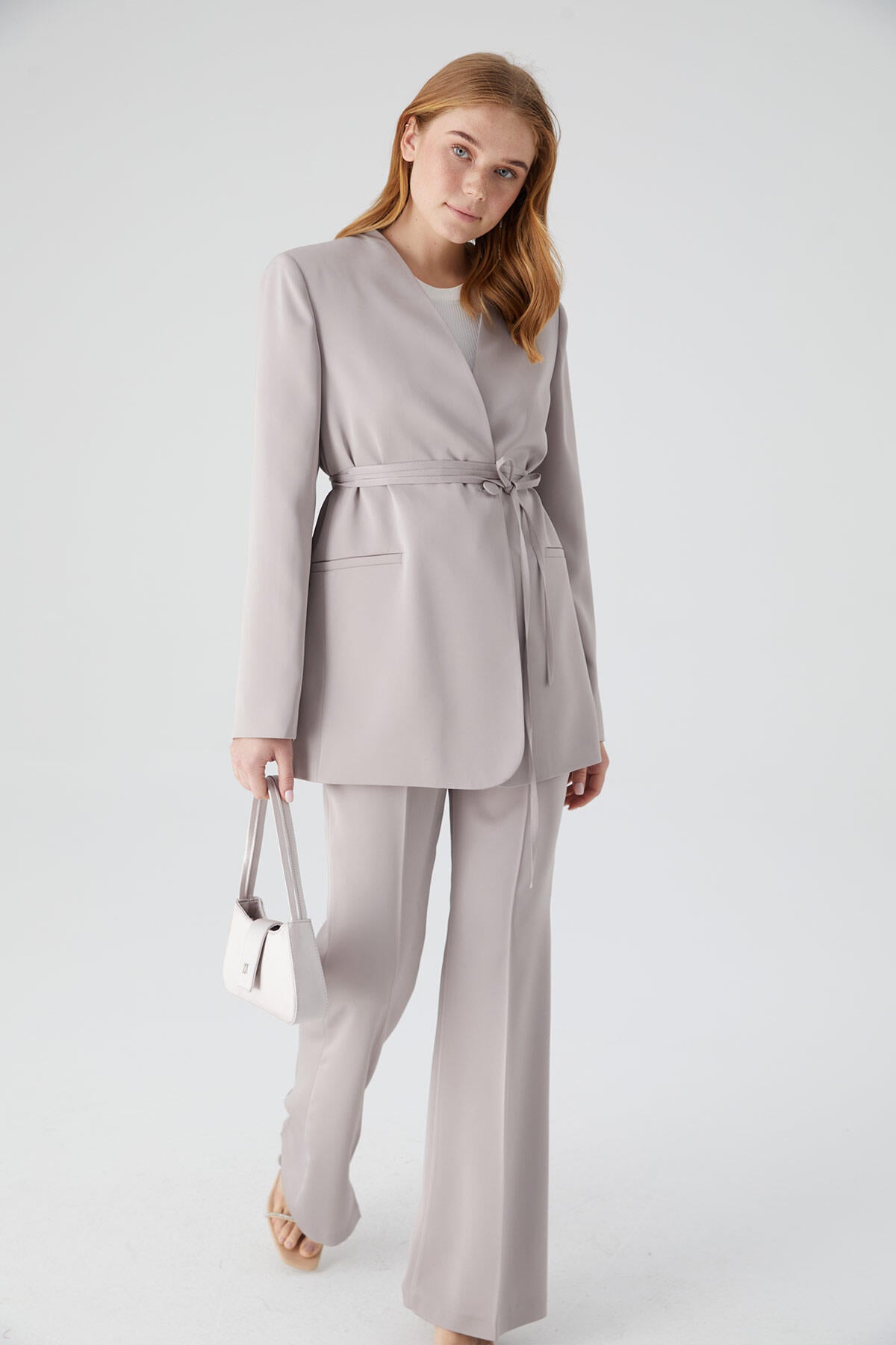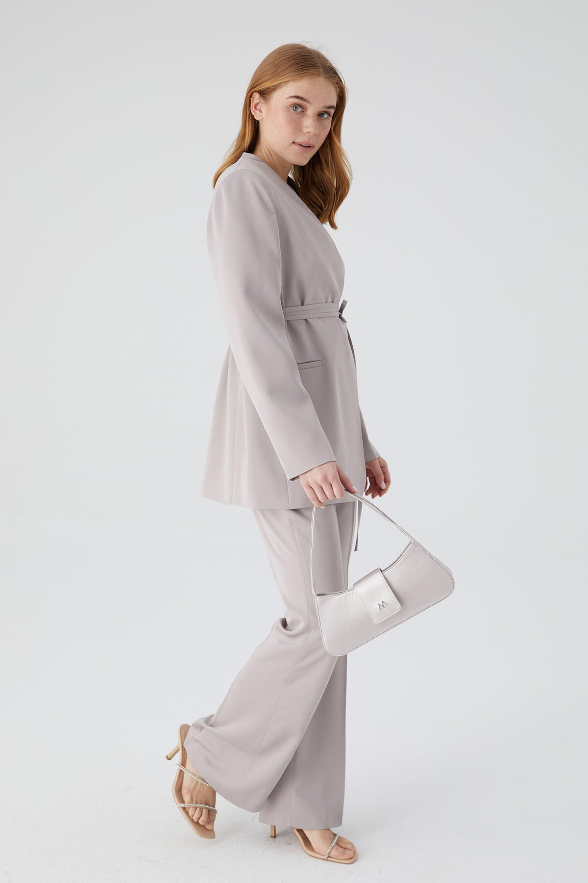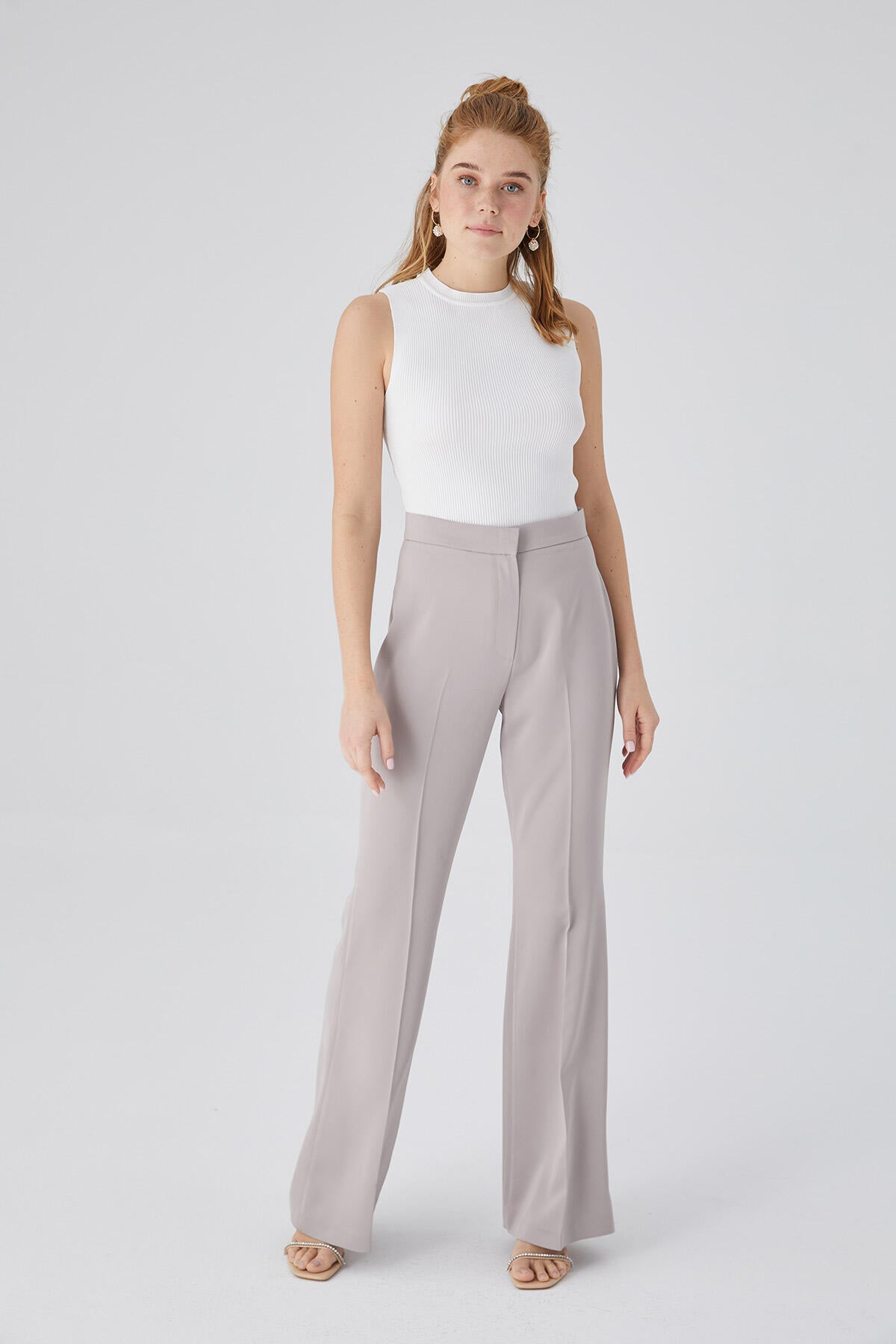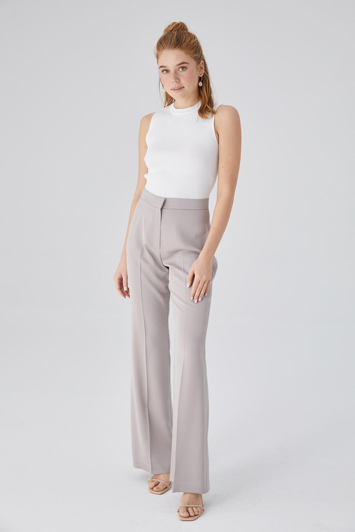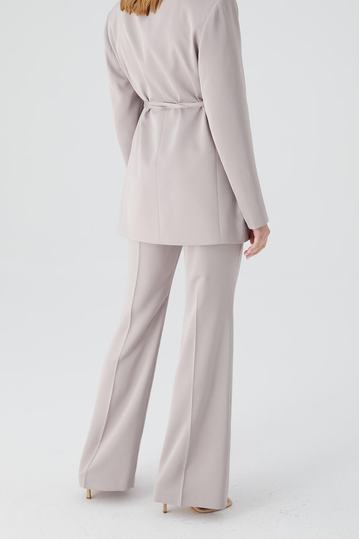 Satin Bell Bottom Trousers Stone