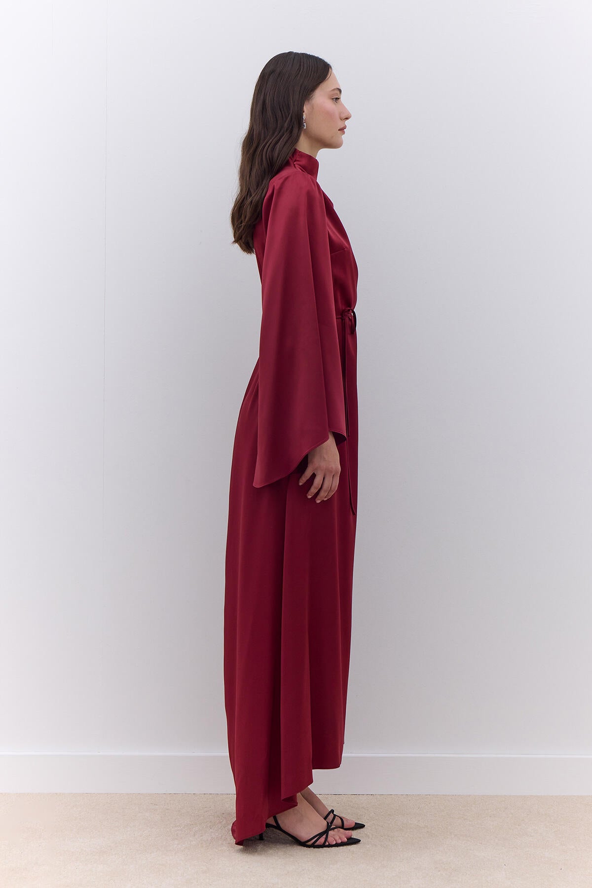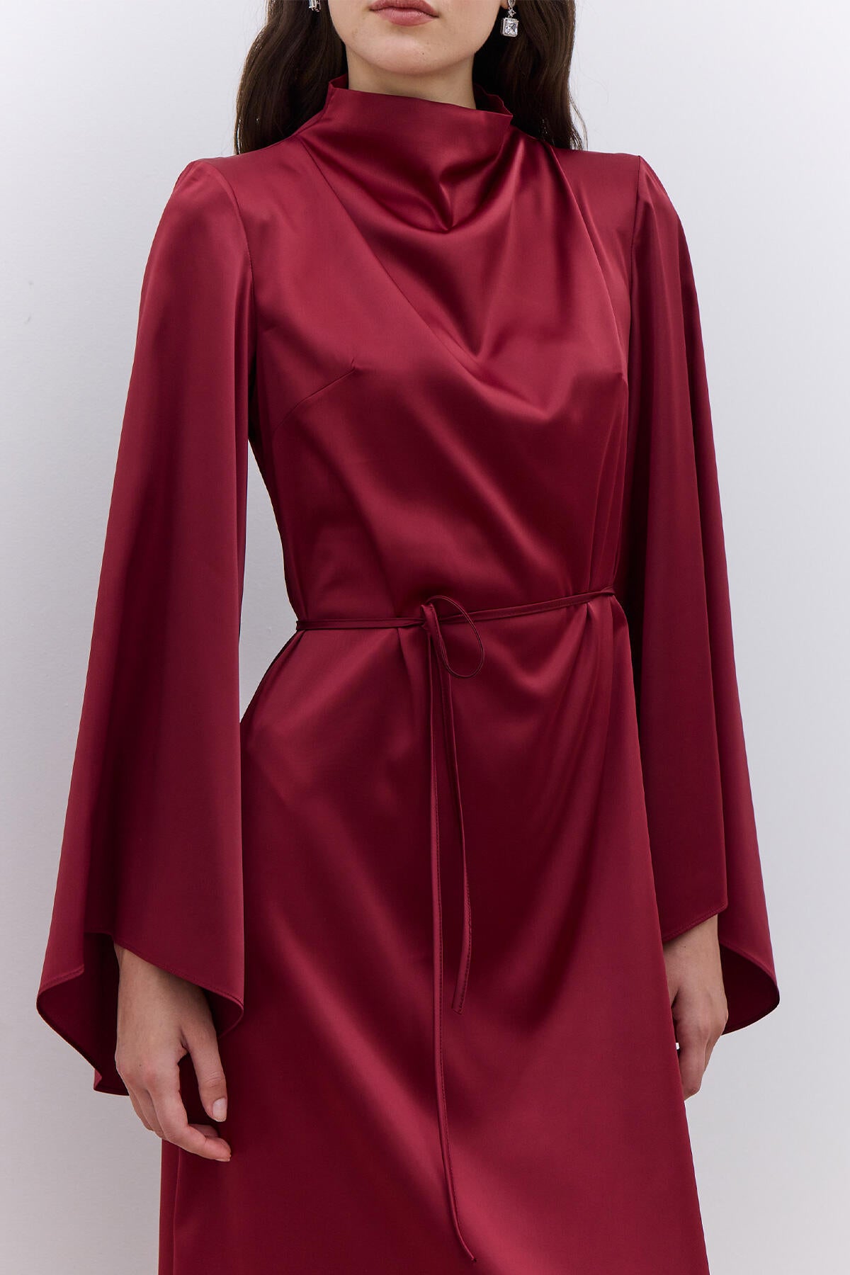 Satin Wide Sleeve Evening Dress Burgundy