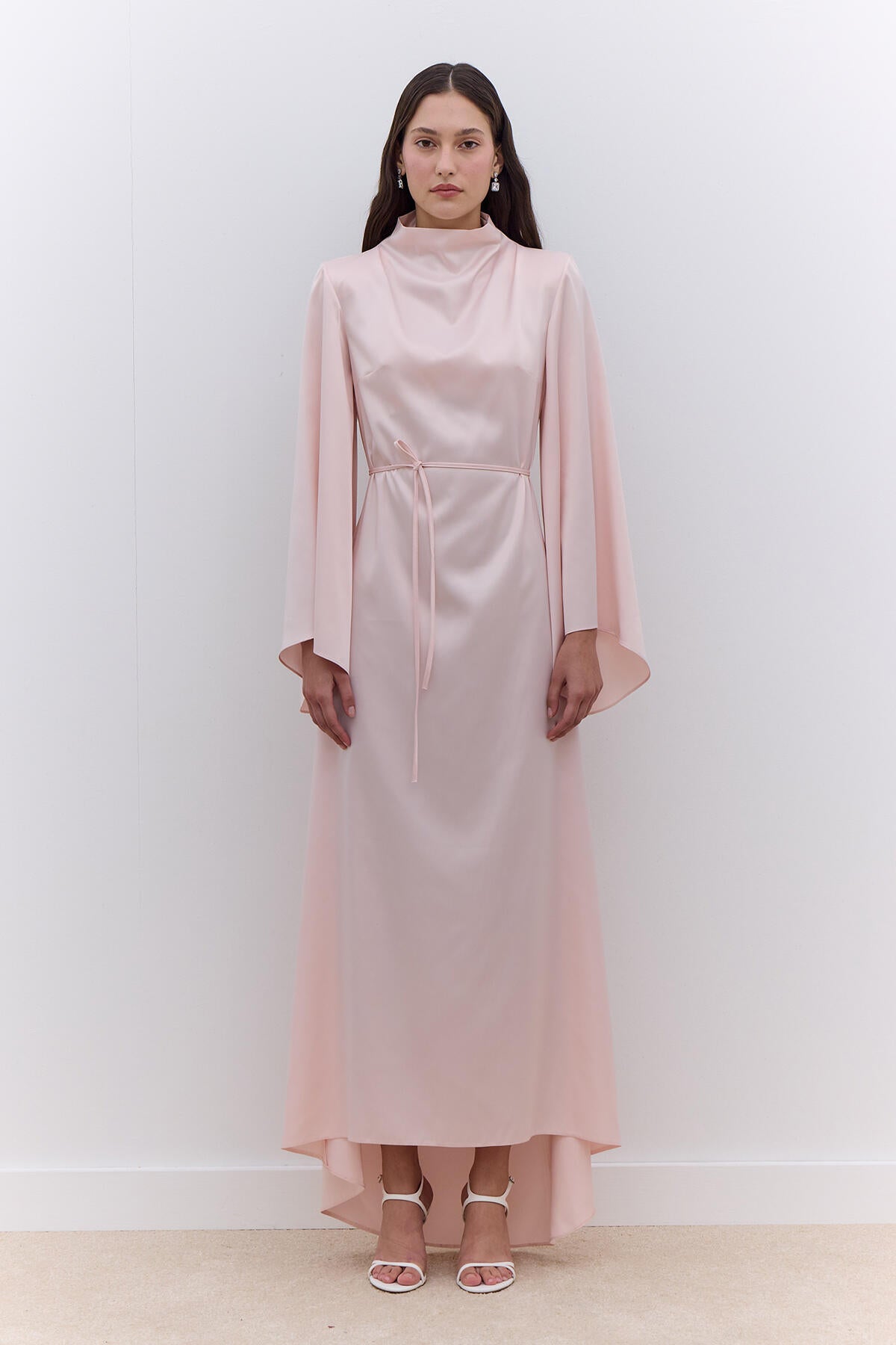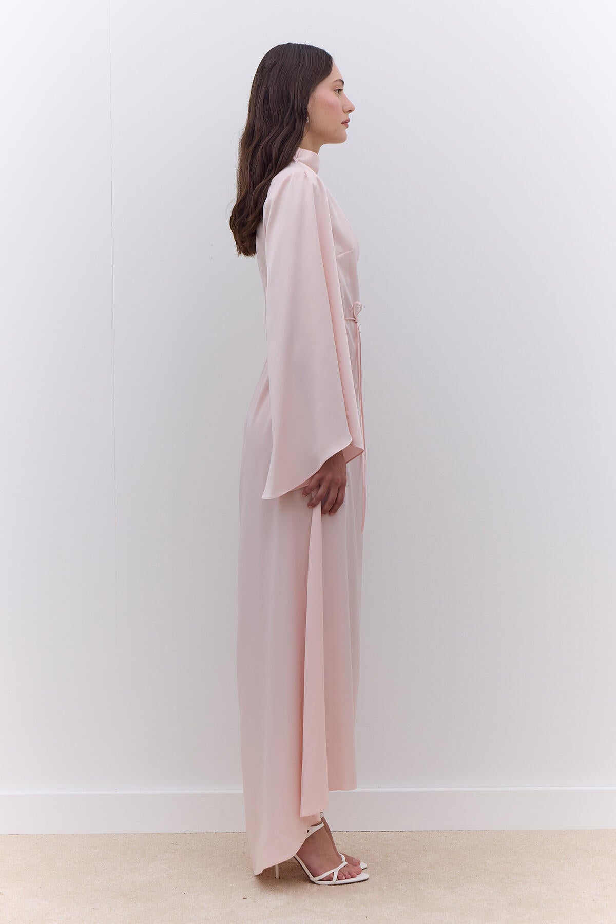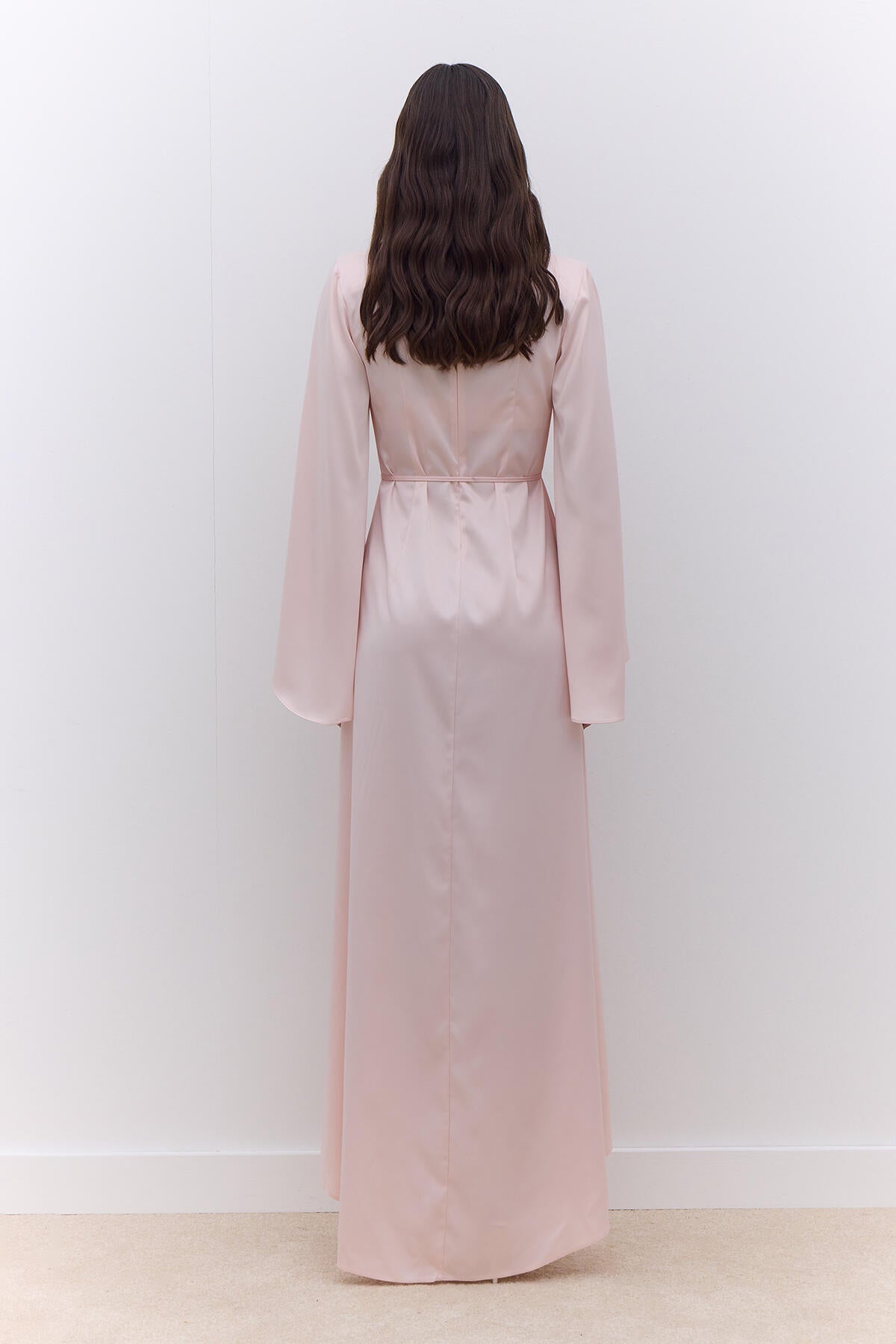 Satin Wide Sleeve Evening Dress Powder
