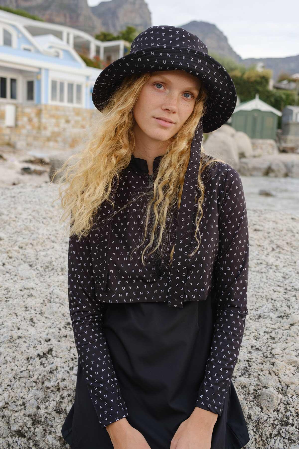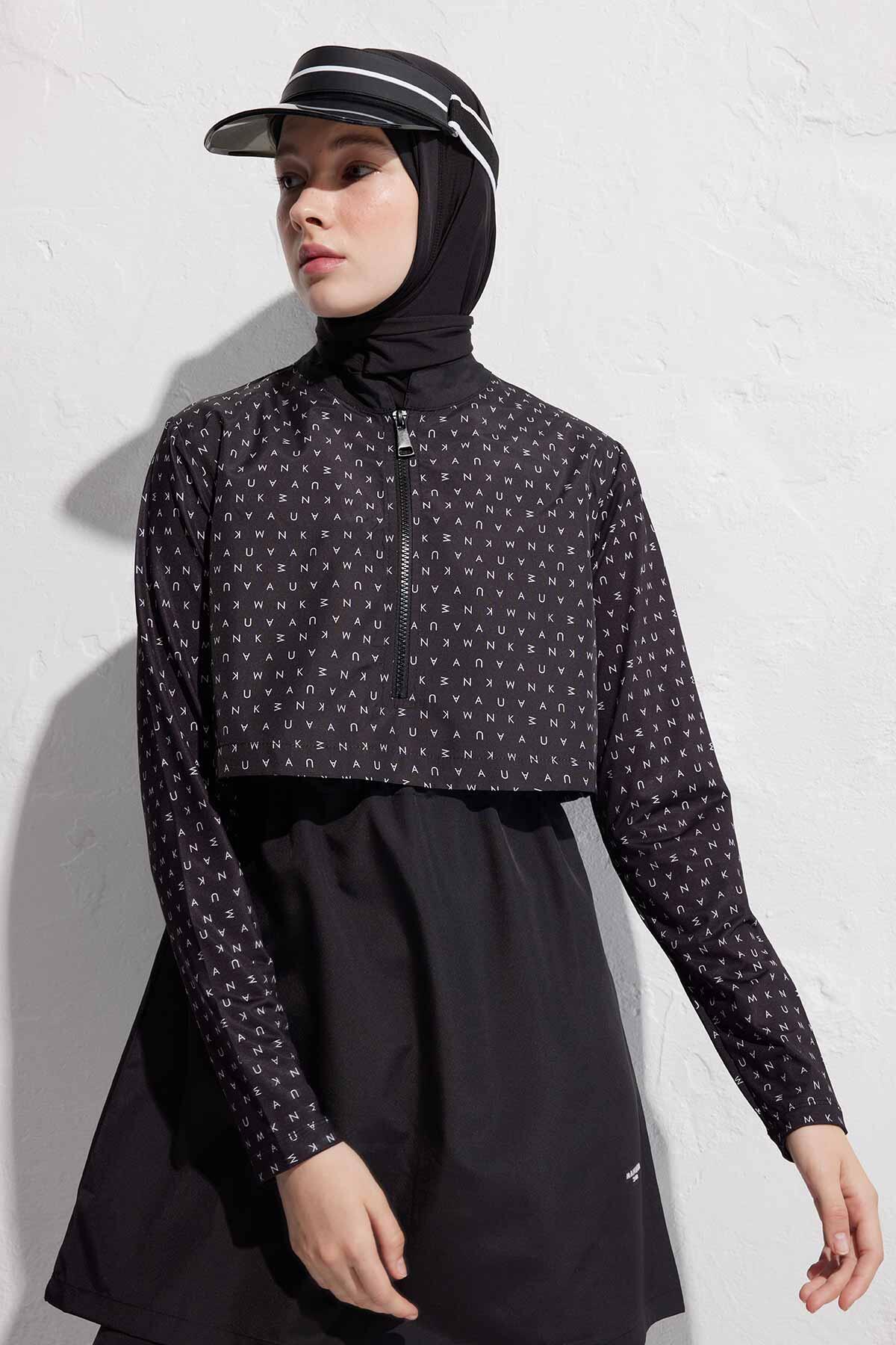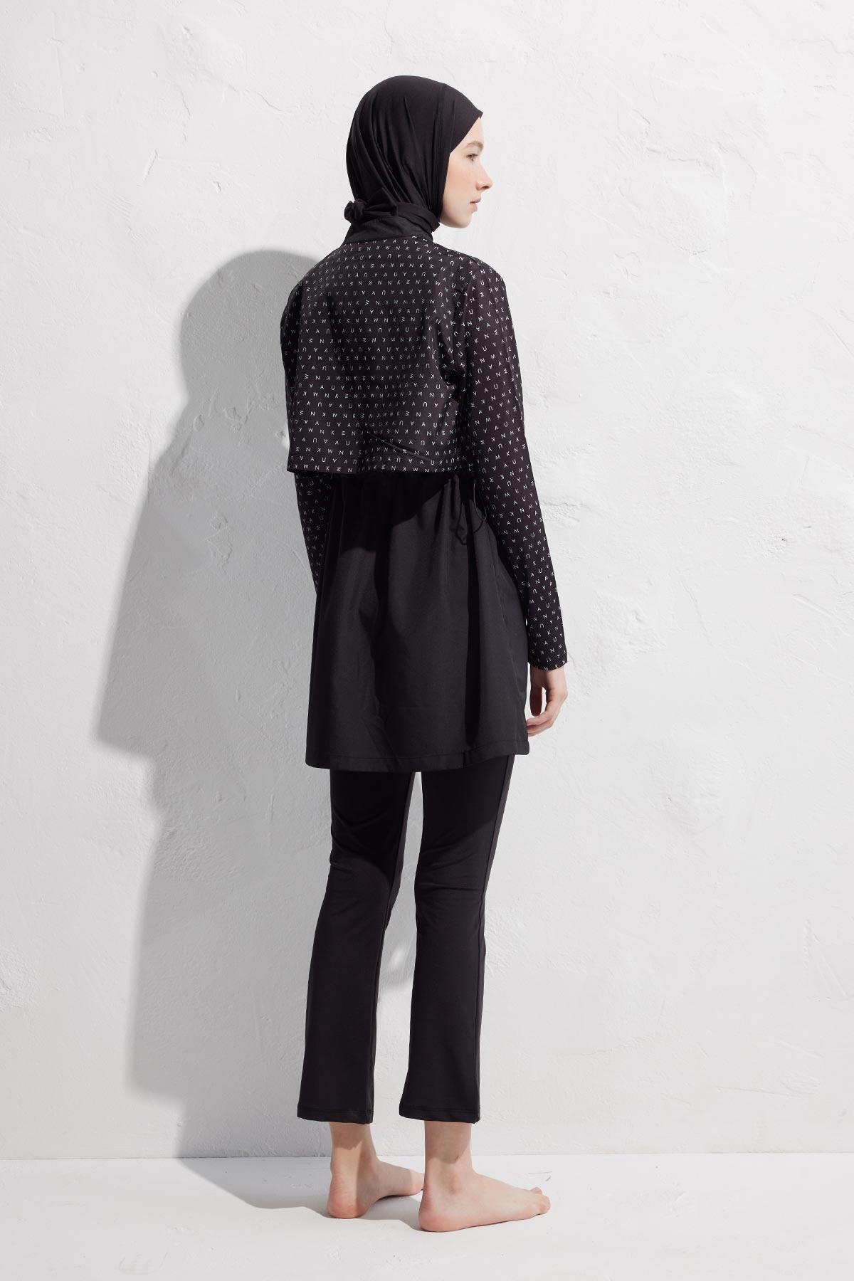 Black Logo Parachute Fabric 3 Piece Modest Swim Set Standard