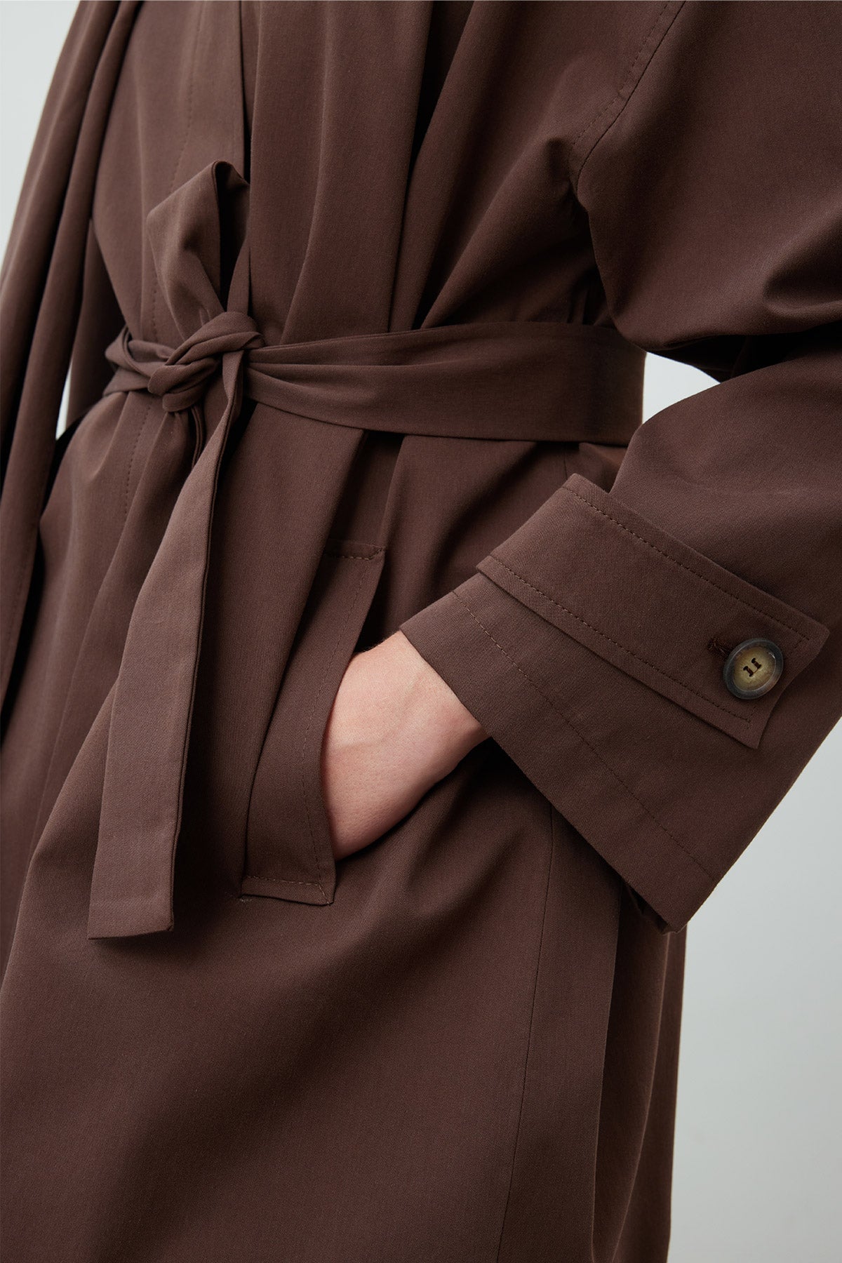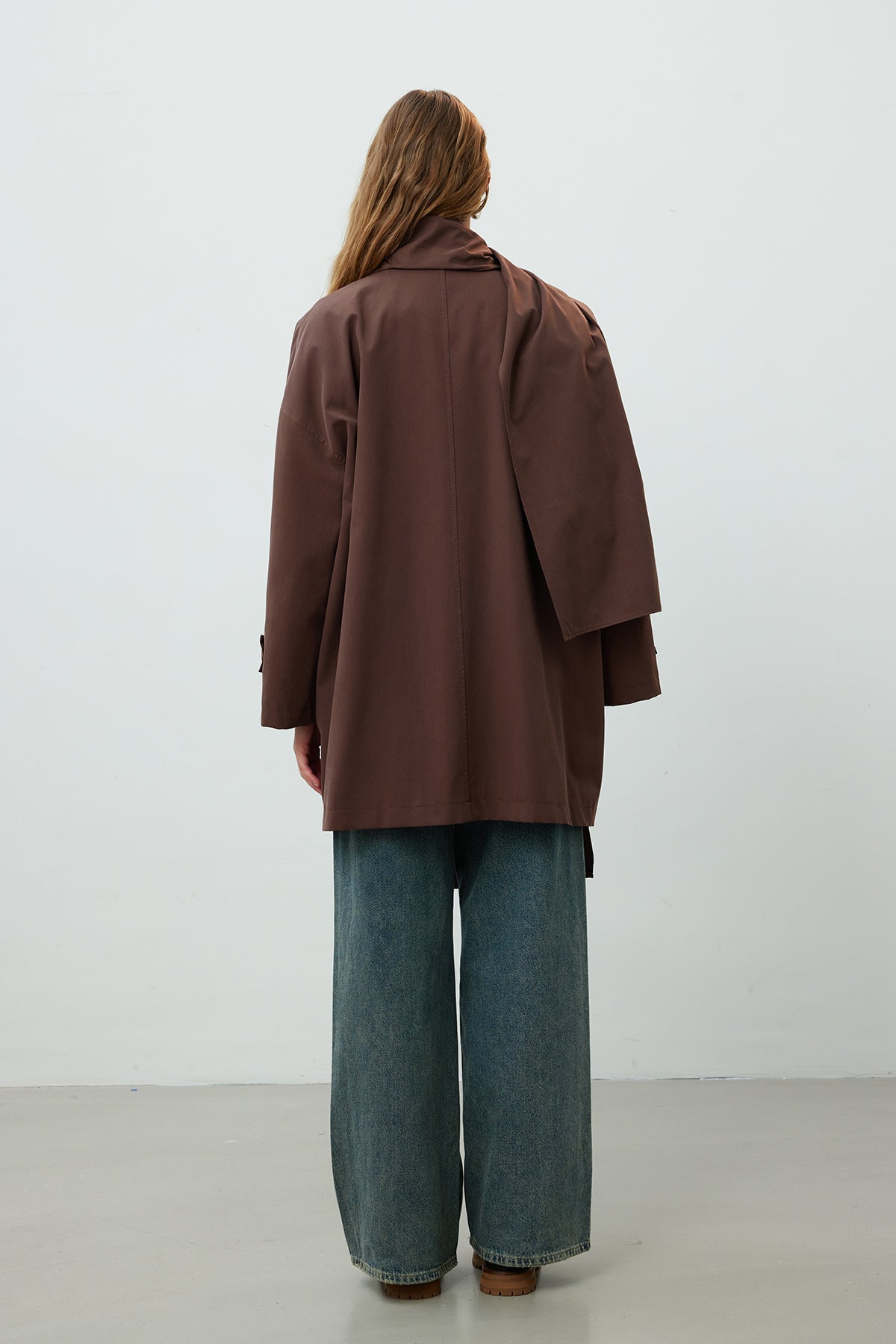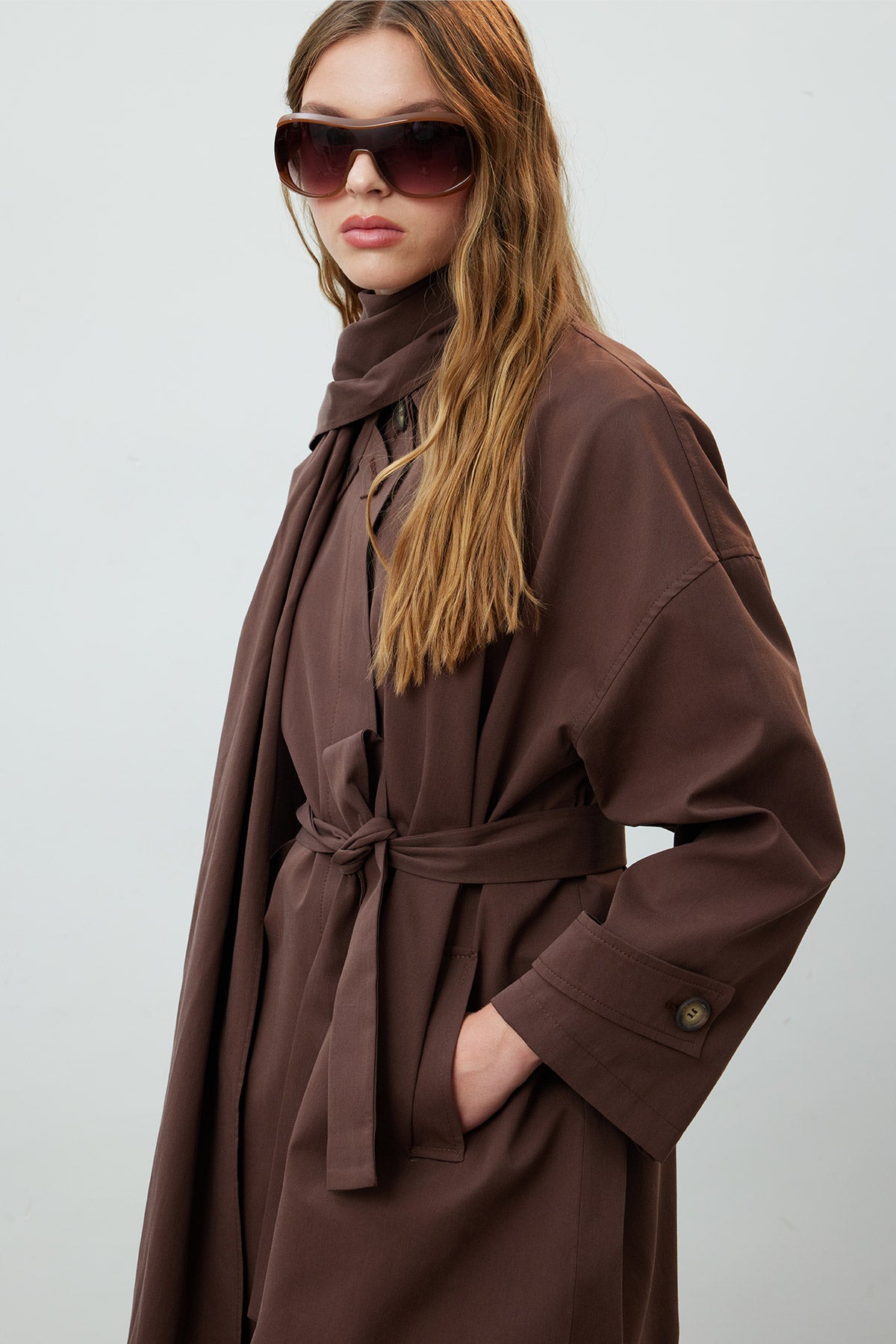 Stockholm Scarf Detailed Oversize Trench Coat Brown
