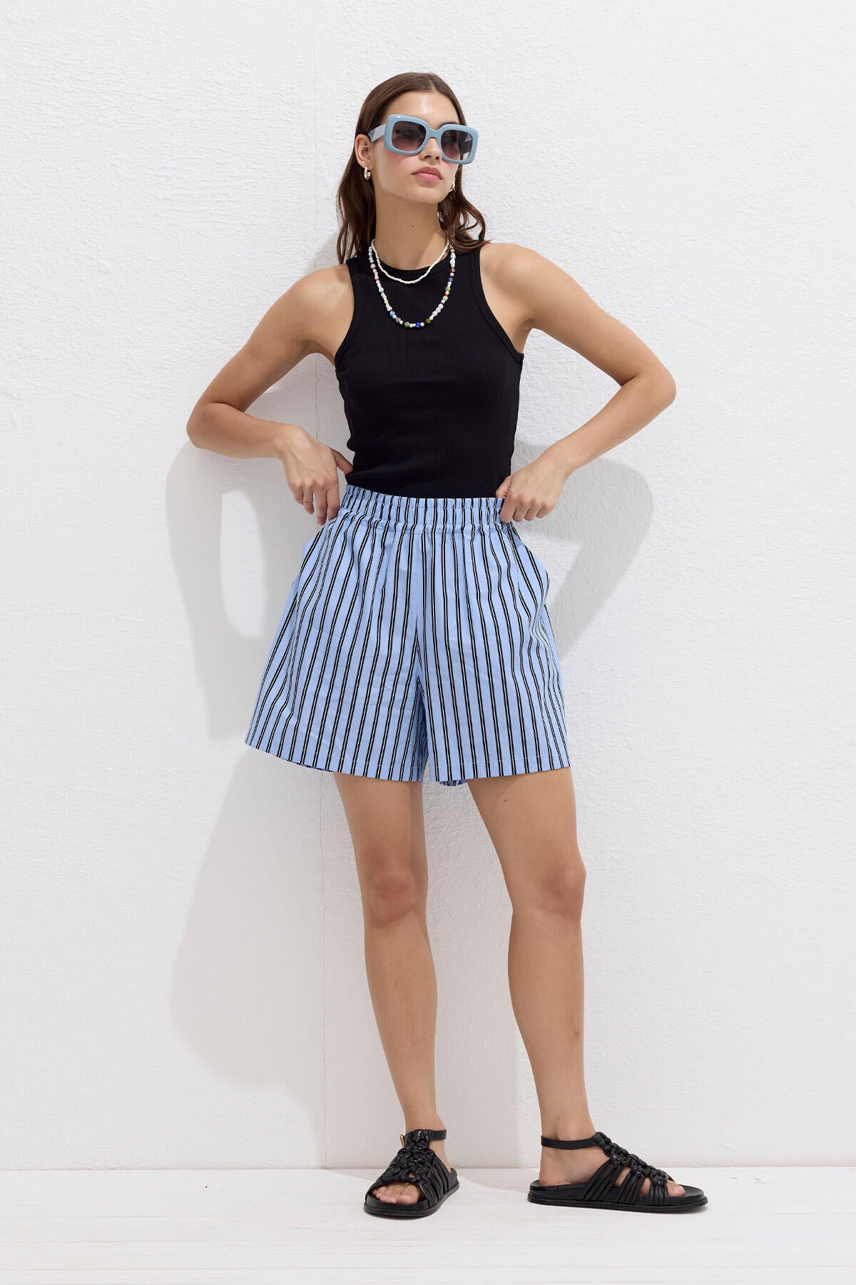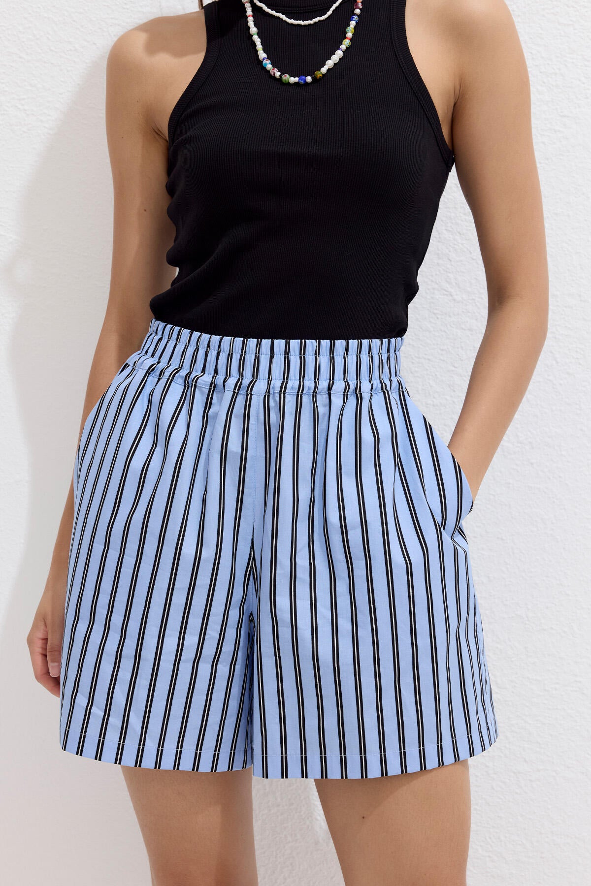 Striped Cotton Shorts Blue Stripe
