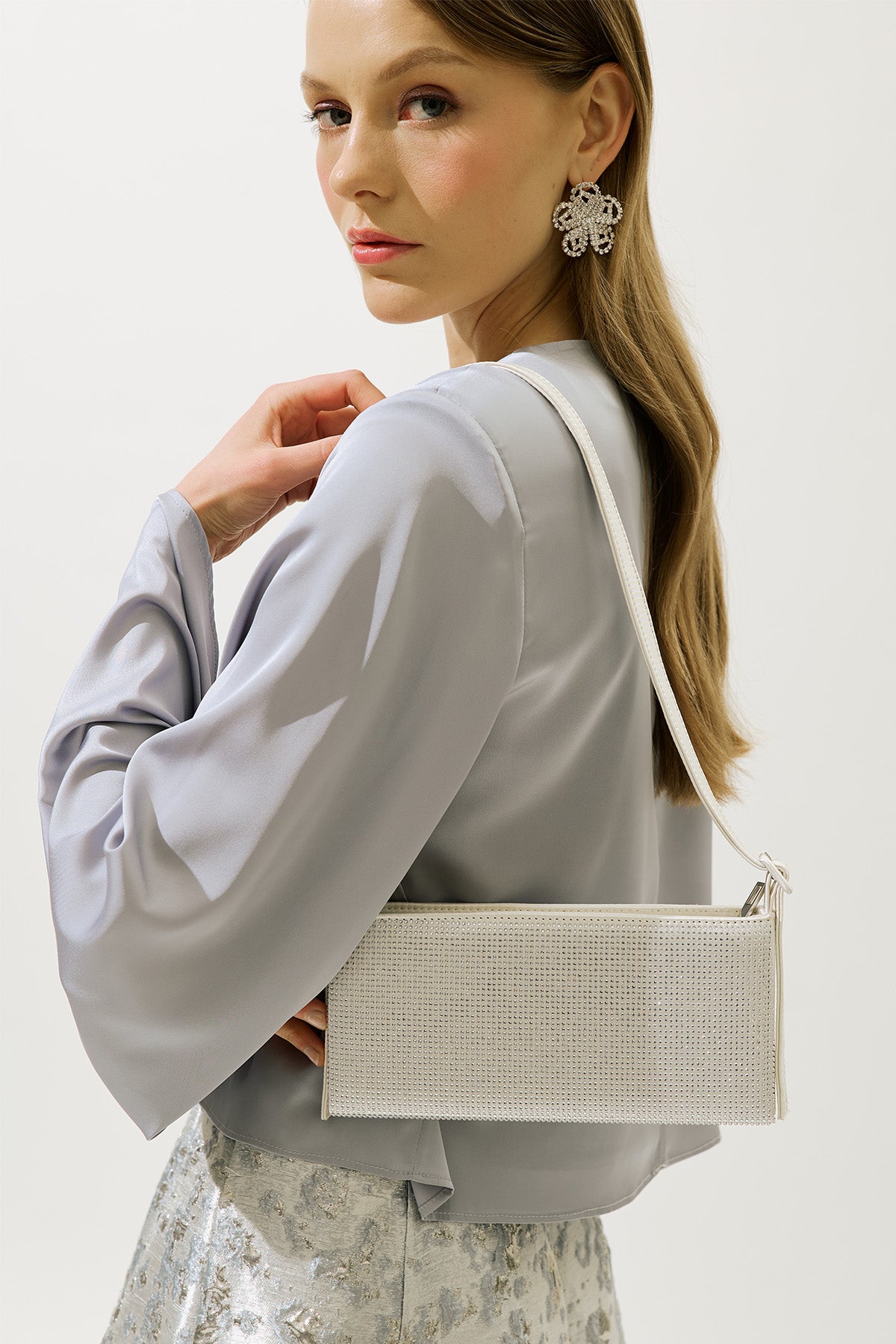 Embellished Baguette Bag Silver