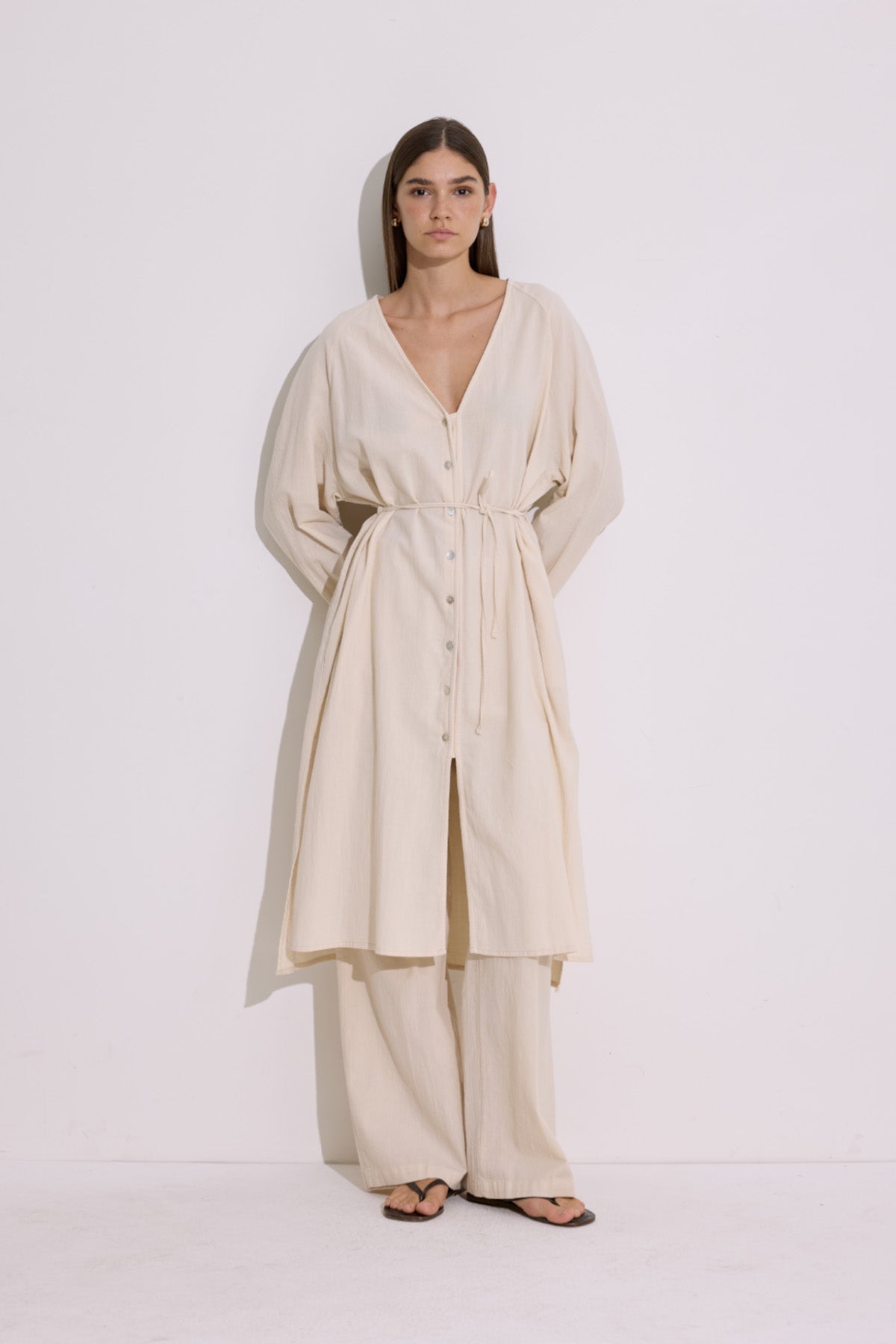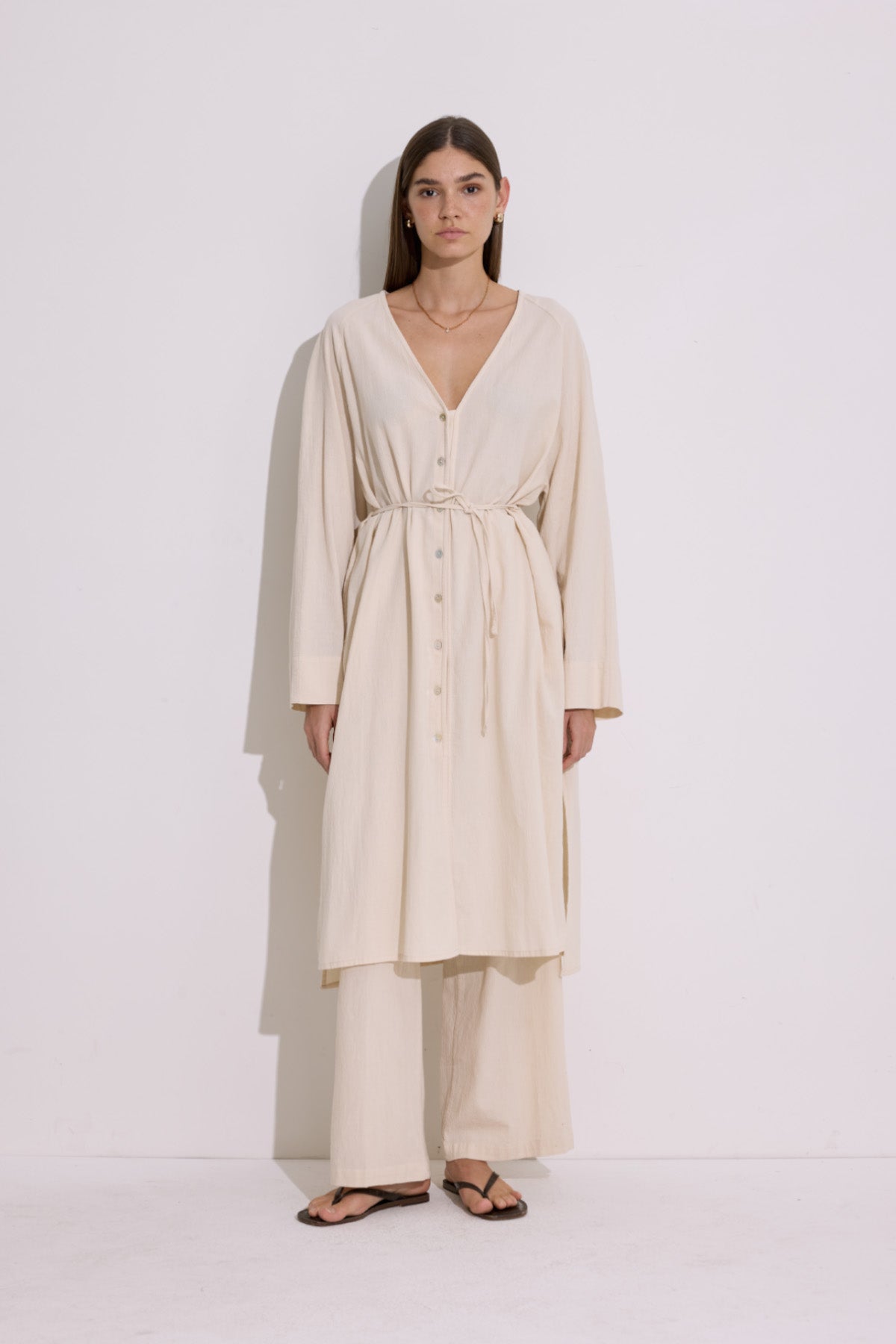 Textured Button Longline Tunic Natural
