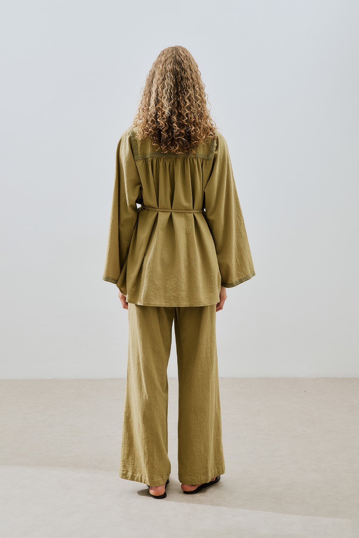 Textured Tie Trousers Khaki
