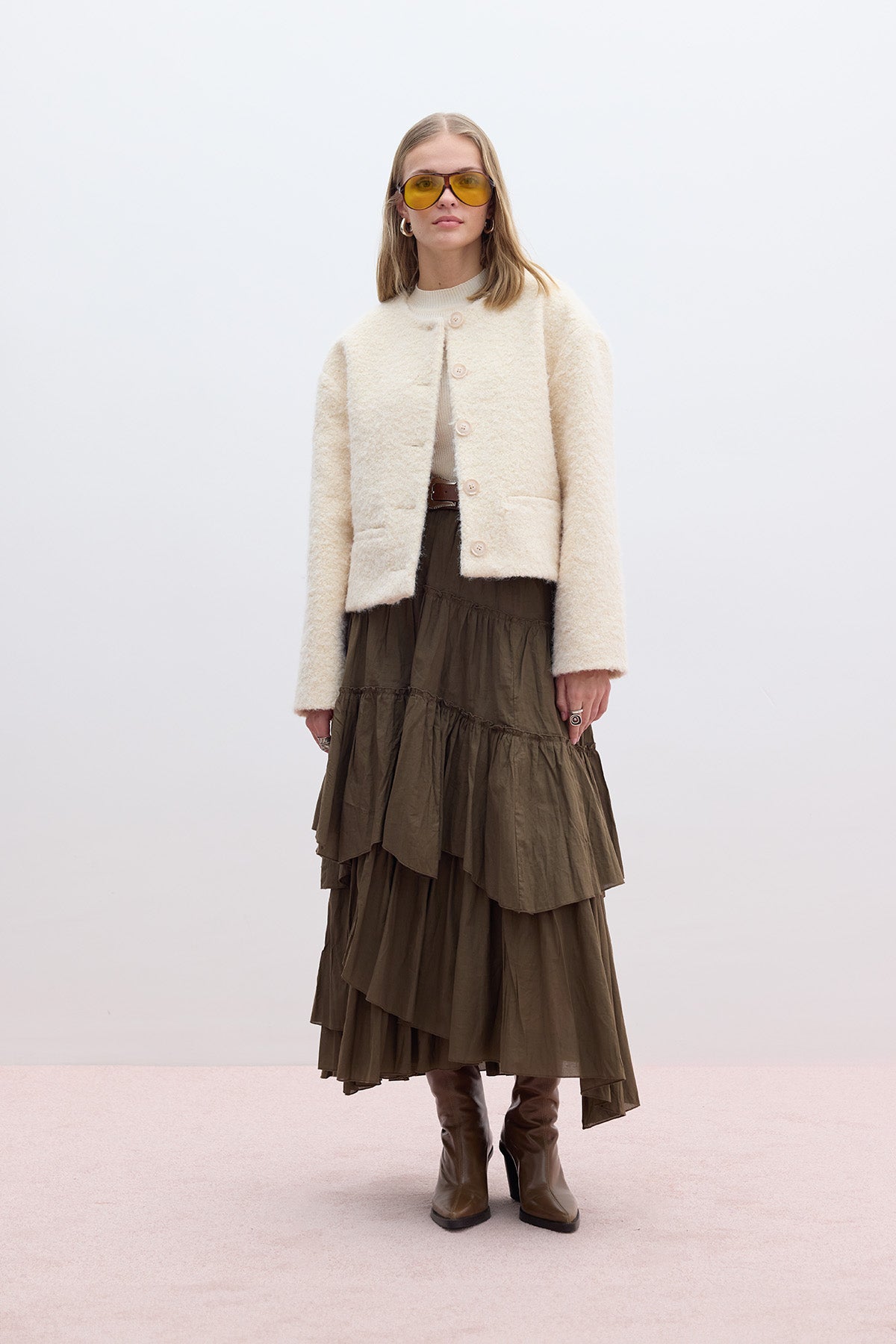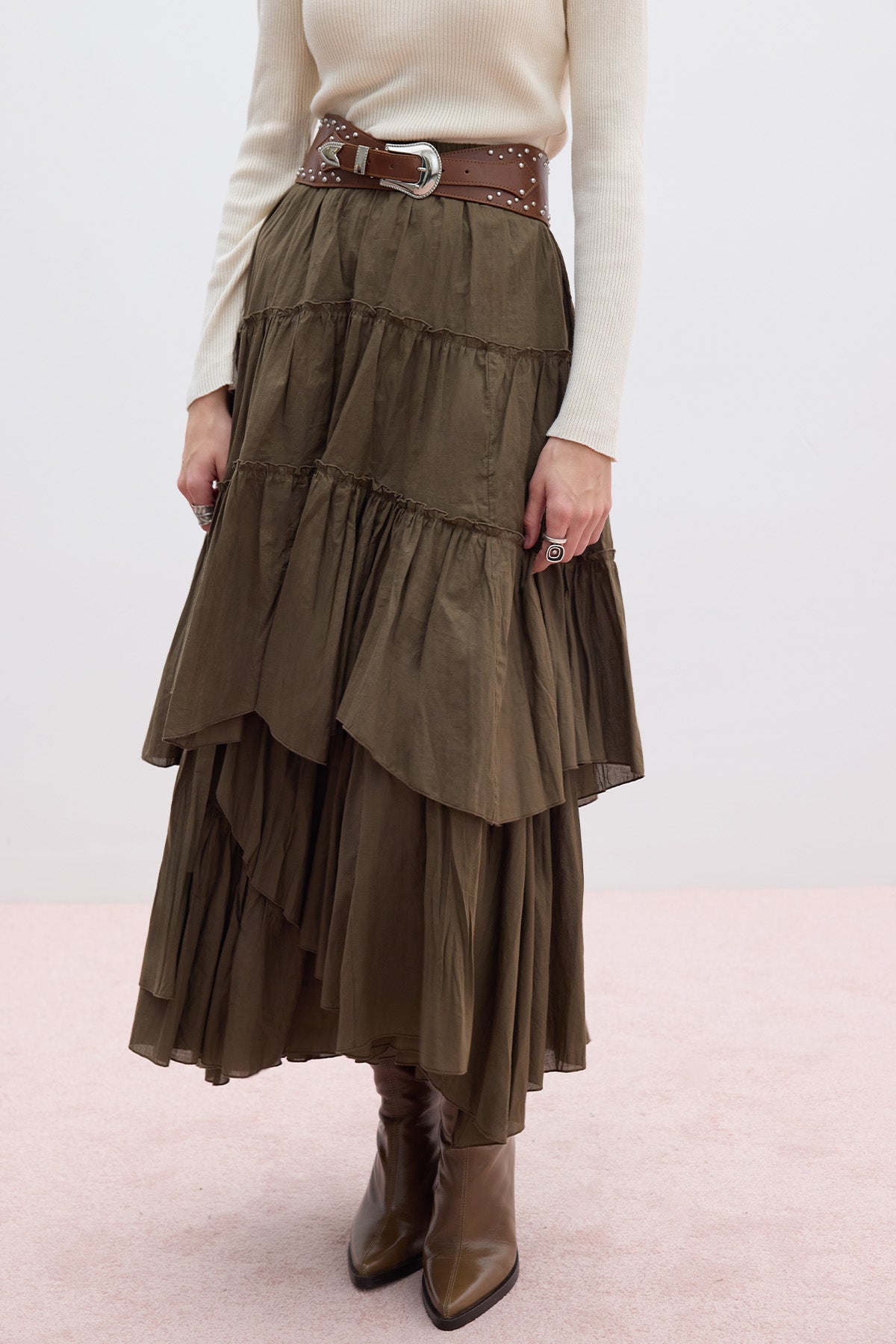 Tiered Boho Voile Skirt Khaki
