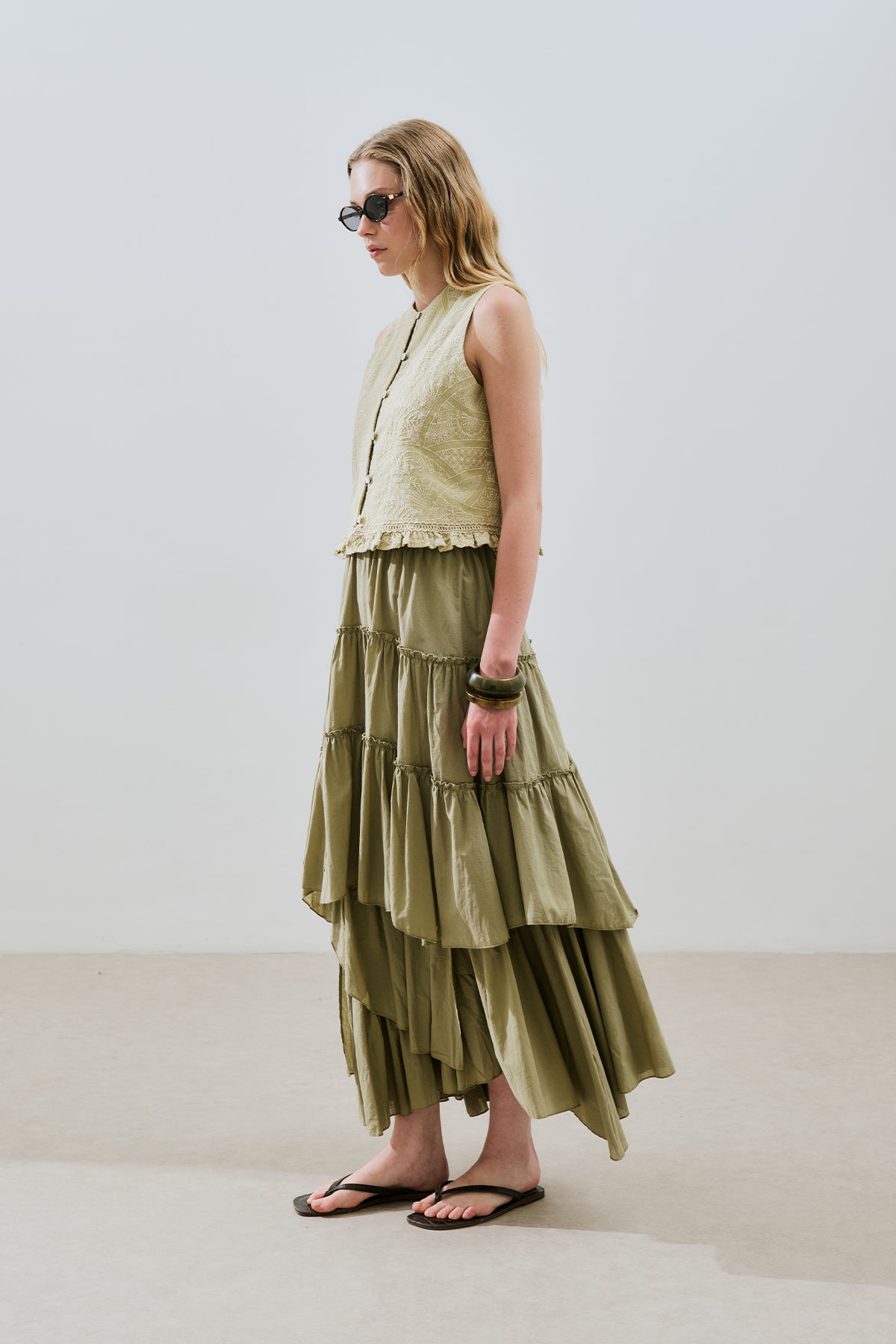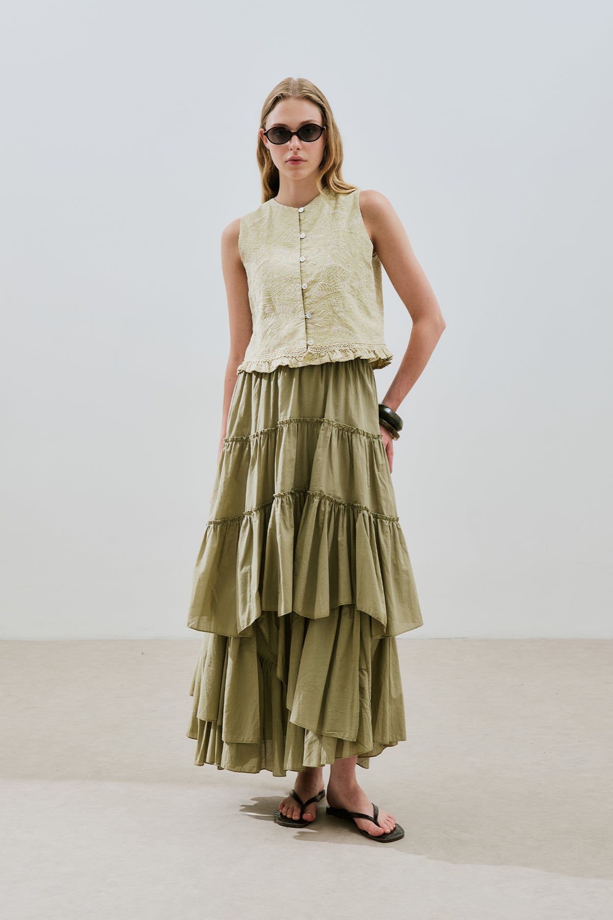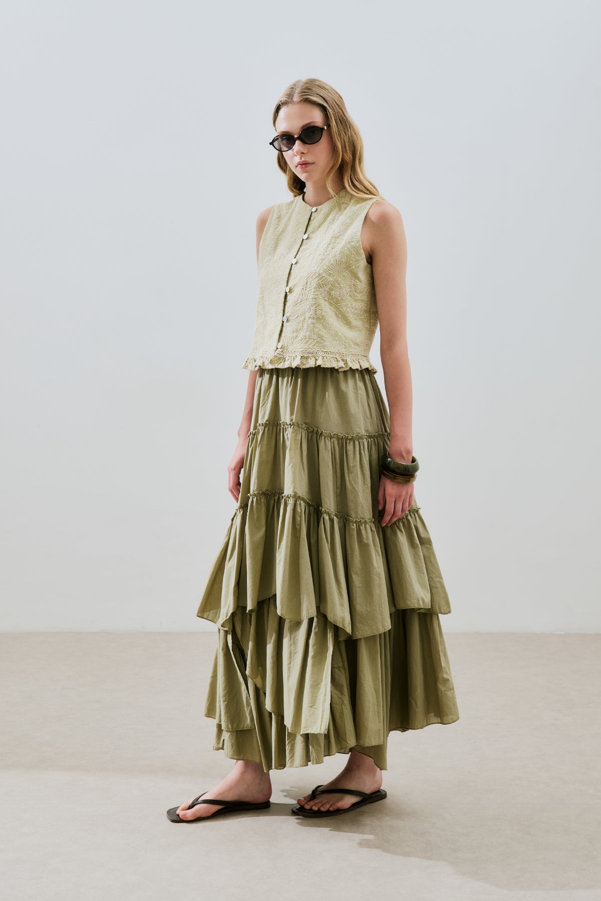 Tiered Boho Voile Skirt Pistachio