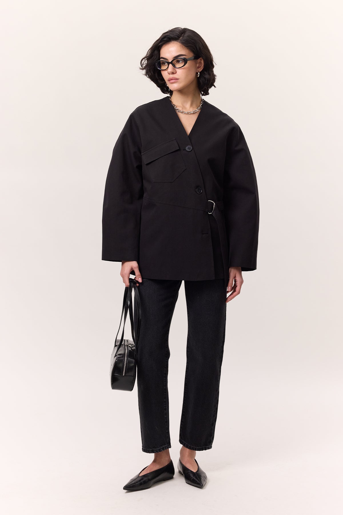 Size S: Front Length: 76.5 cm, Back Length: 74.5 cm, Hem: 58 cm, Sleeve Length: 60.5 cm, Chest: 56 cm