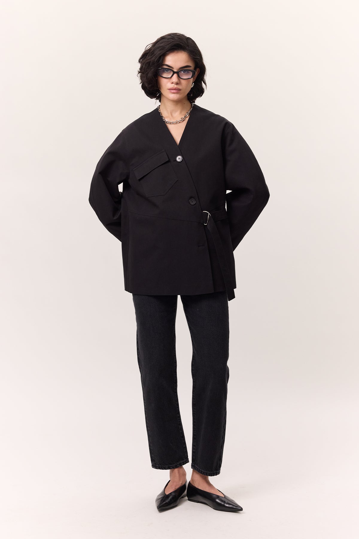 Buckle Detail Double-Breasted Jacket Black