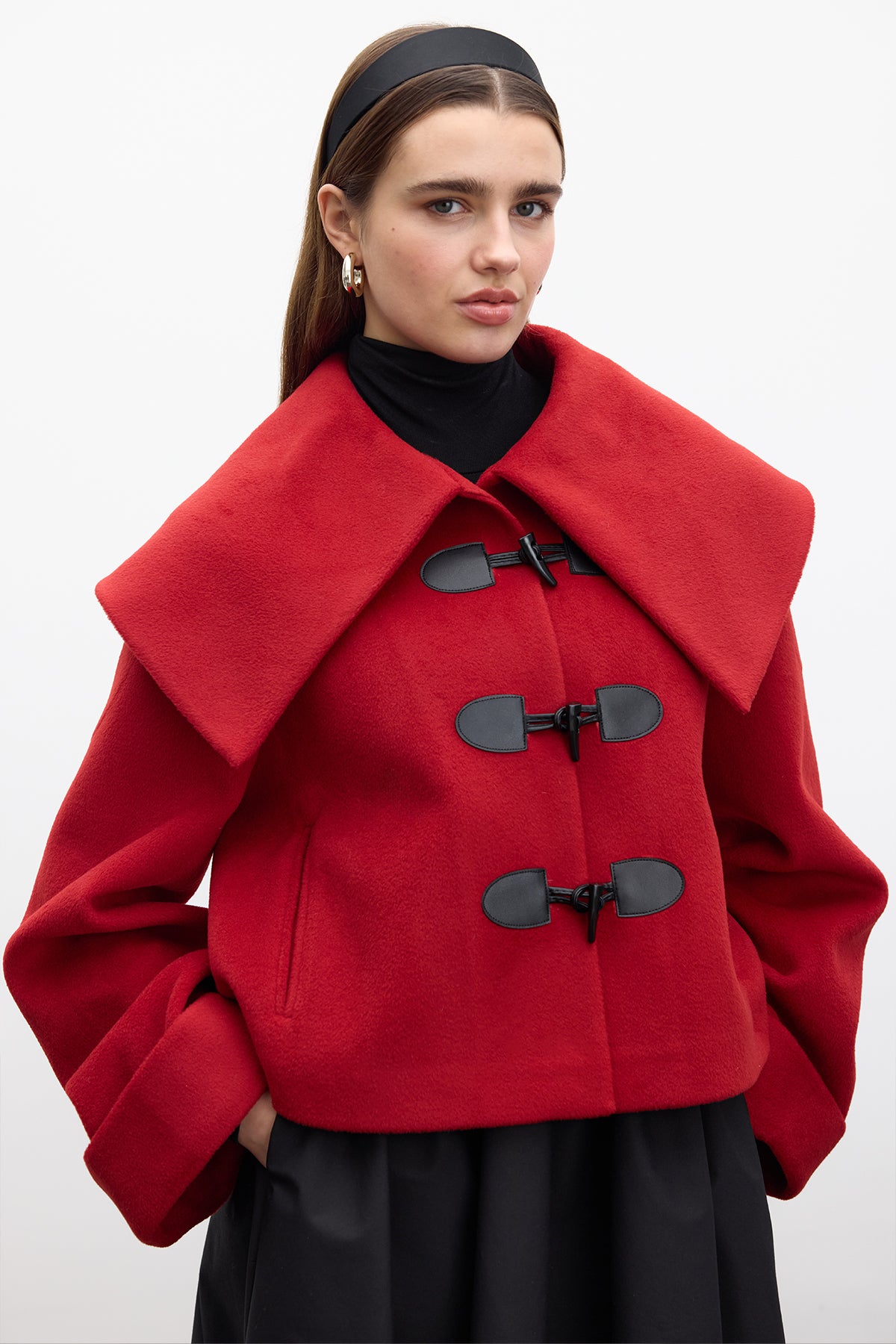 Buckle Detail Cachet Coat Red