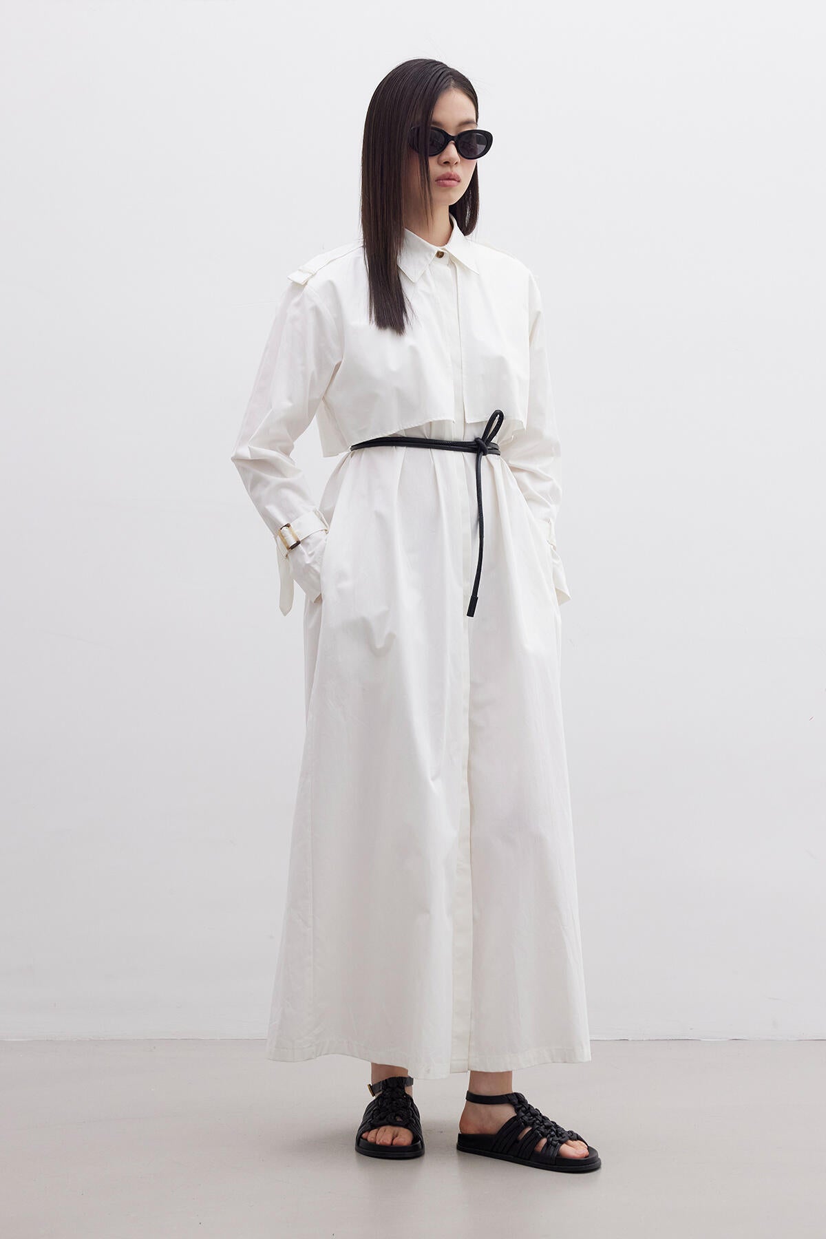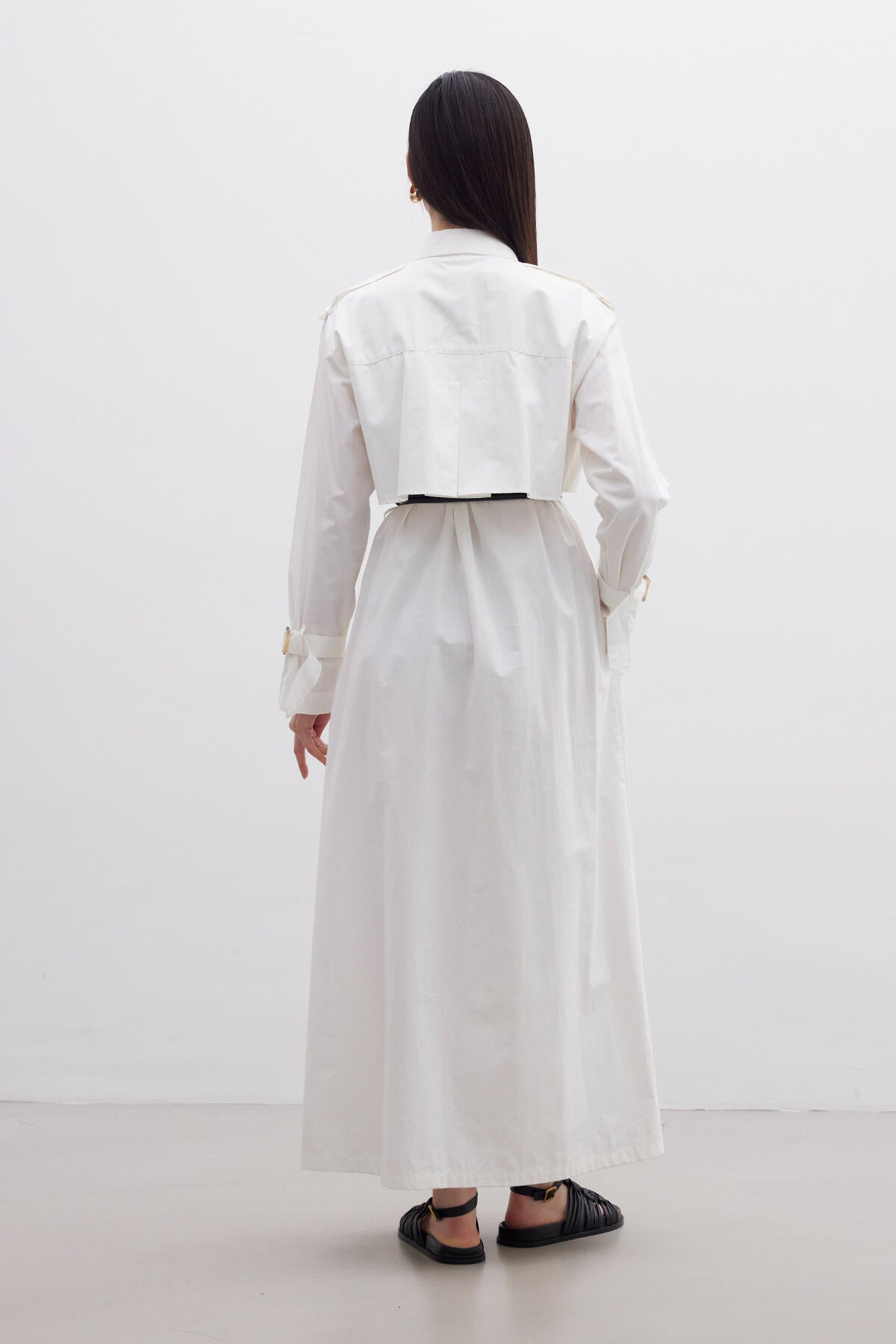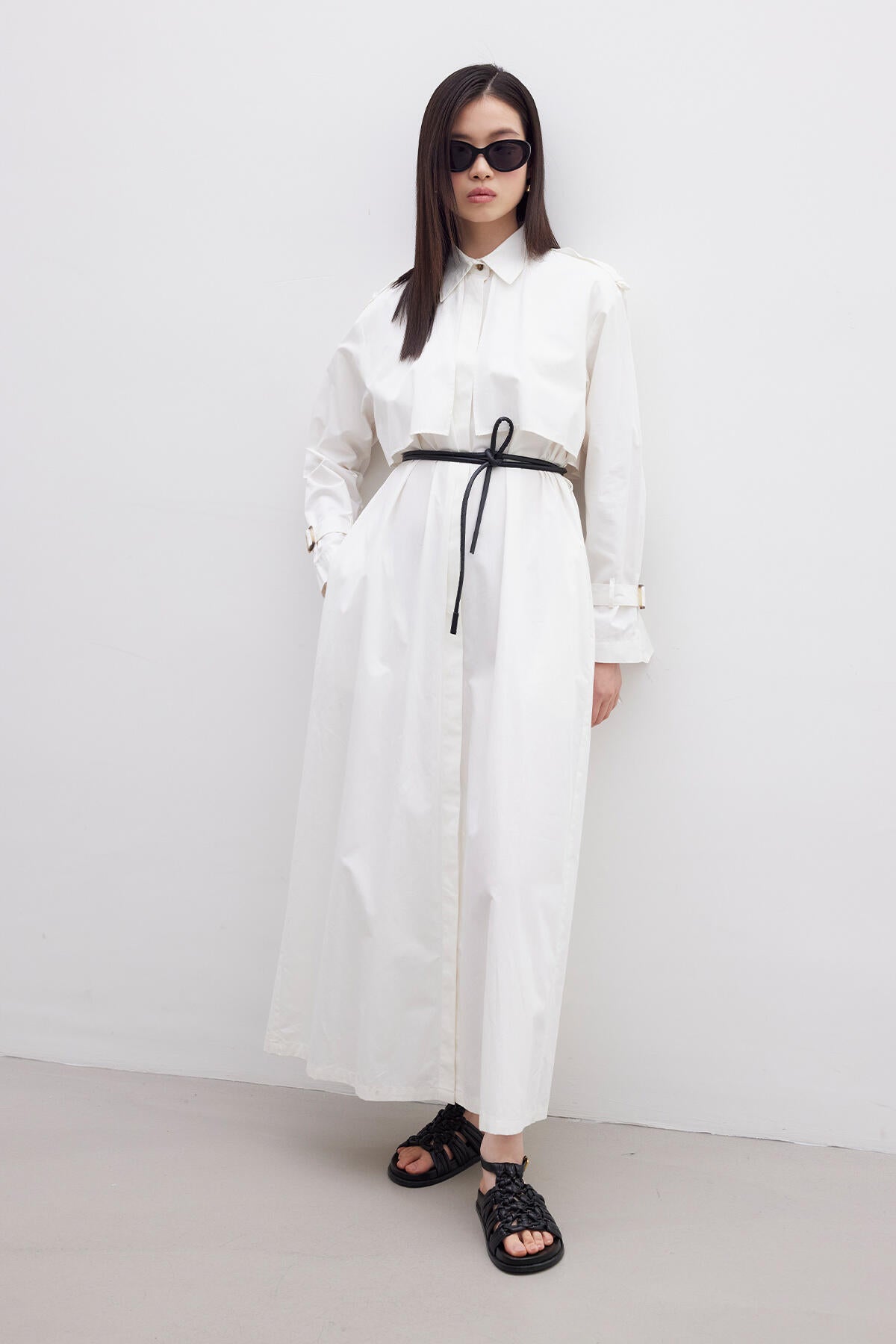 Crafted from lightweight cotton fabric, this dress is perfect for warm weather wear. The absence of lining ensures breathability, making it ideal for summer days. Featuring trench coat-inspired details such as the windbreaker detail and waist belt, it adds a touch of sophistication to your ensemble. The shirt collar adds a classic touch, while the waist belt cinches in the silhouette for a flattering fit.