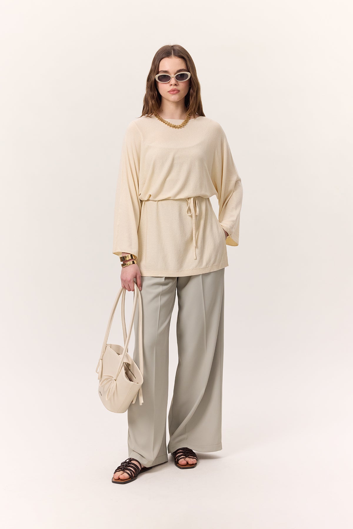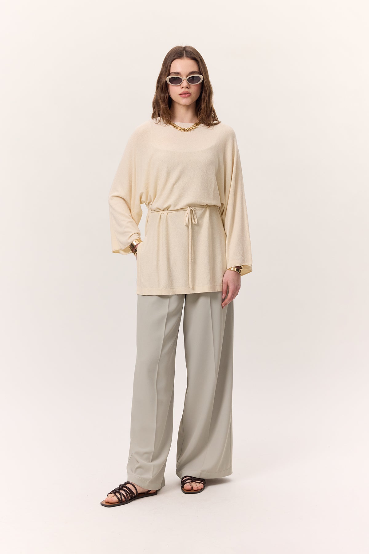 Knit Belted Tunic Vanilla