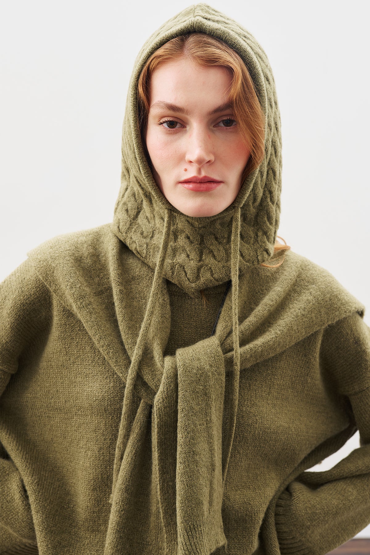Triko örgü detaylı, bağcık detaylı, normal kalıp.