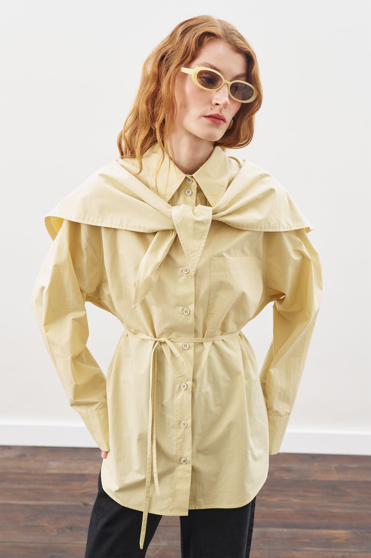 Oversized Shirt With Triangle Scarf Soft Yellow