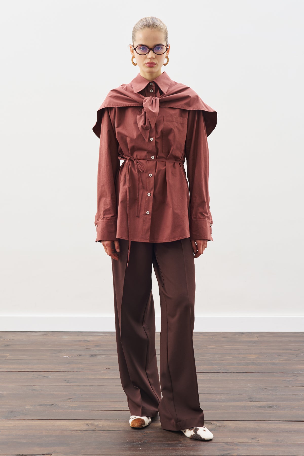 Oversized Shirt With Triangle Scarf Cinnamon Bark