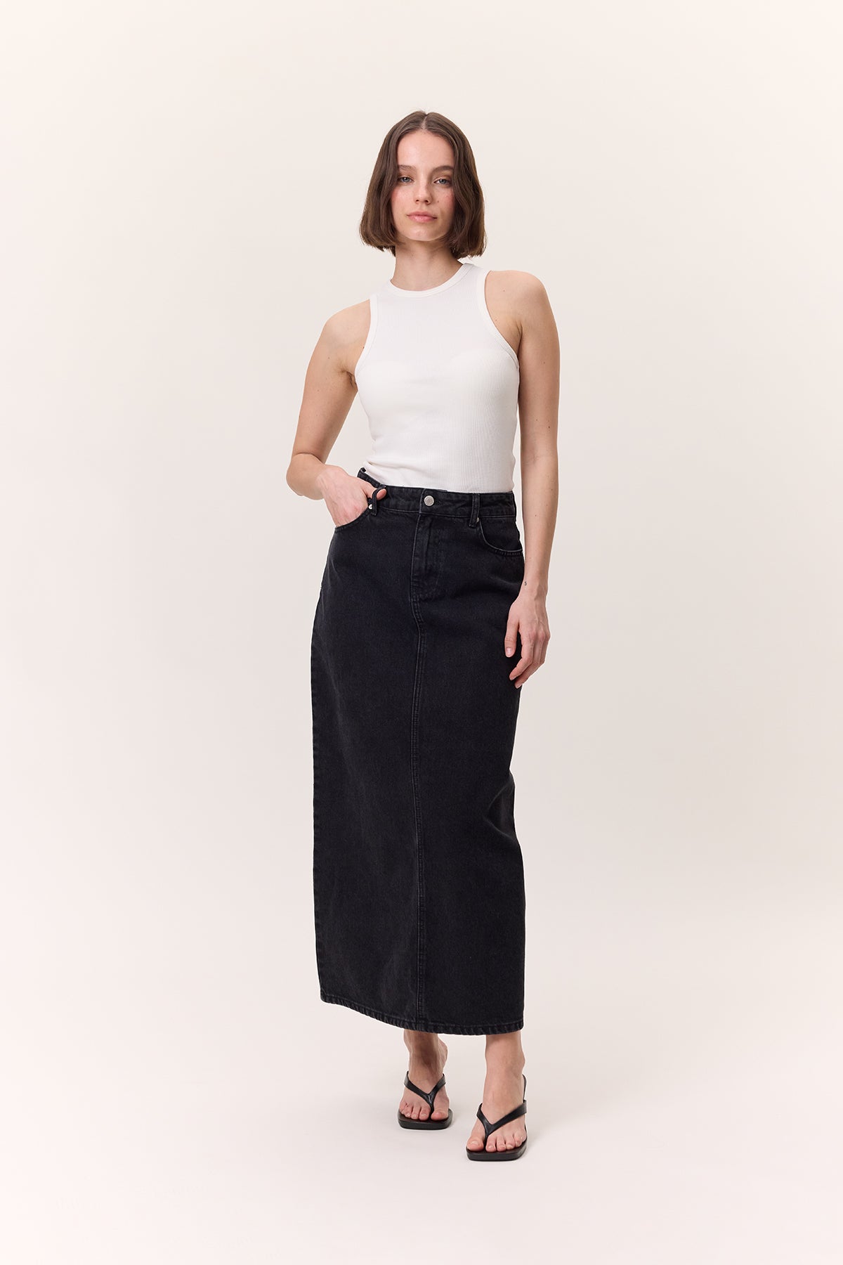 Long Denim Skirt Black