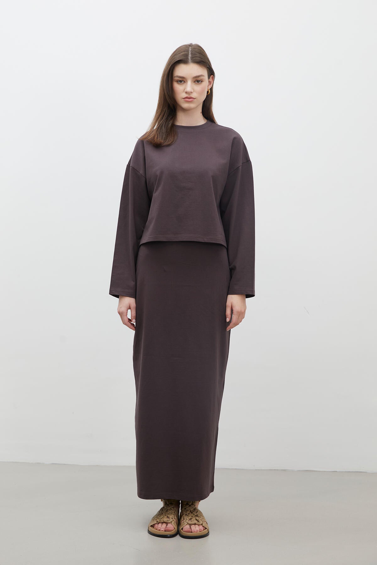 Long Sleeve Cotton Crop T-Shirt Dark Brown