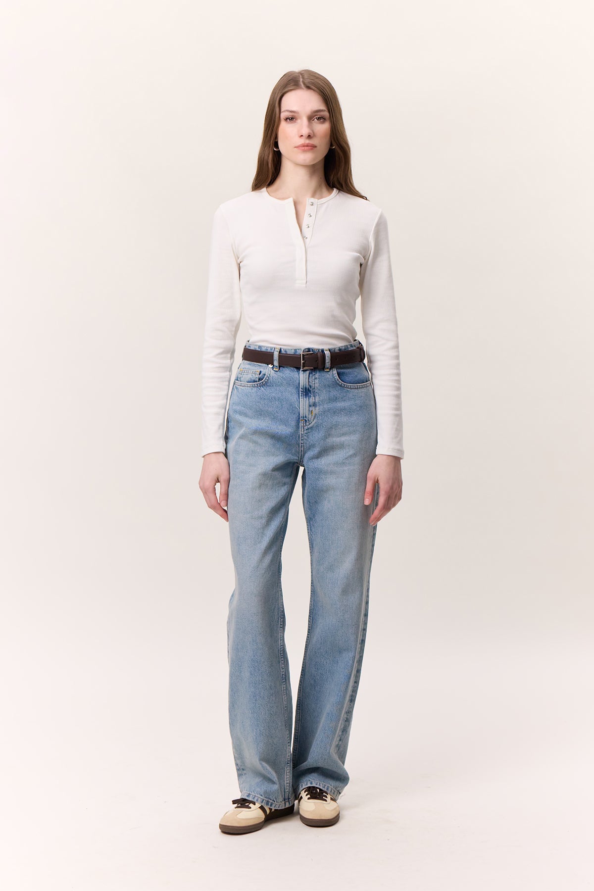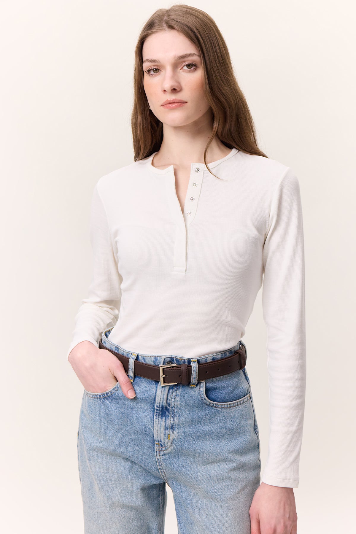 Long-Sleeve Snap-Collar Bodysuit Ecru