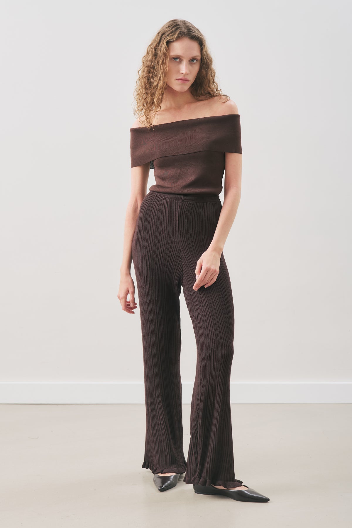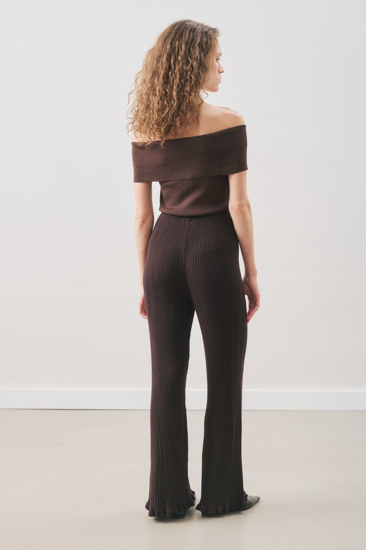 Ruffled Ribbed Knit Pants Brown
