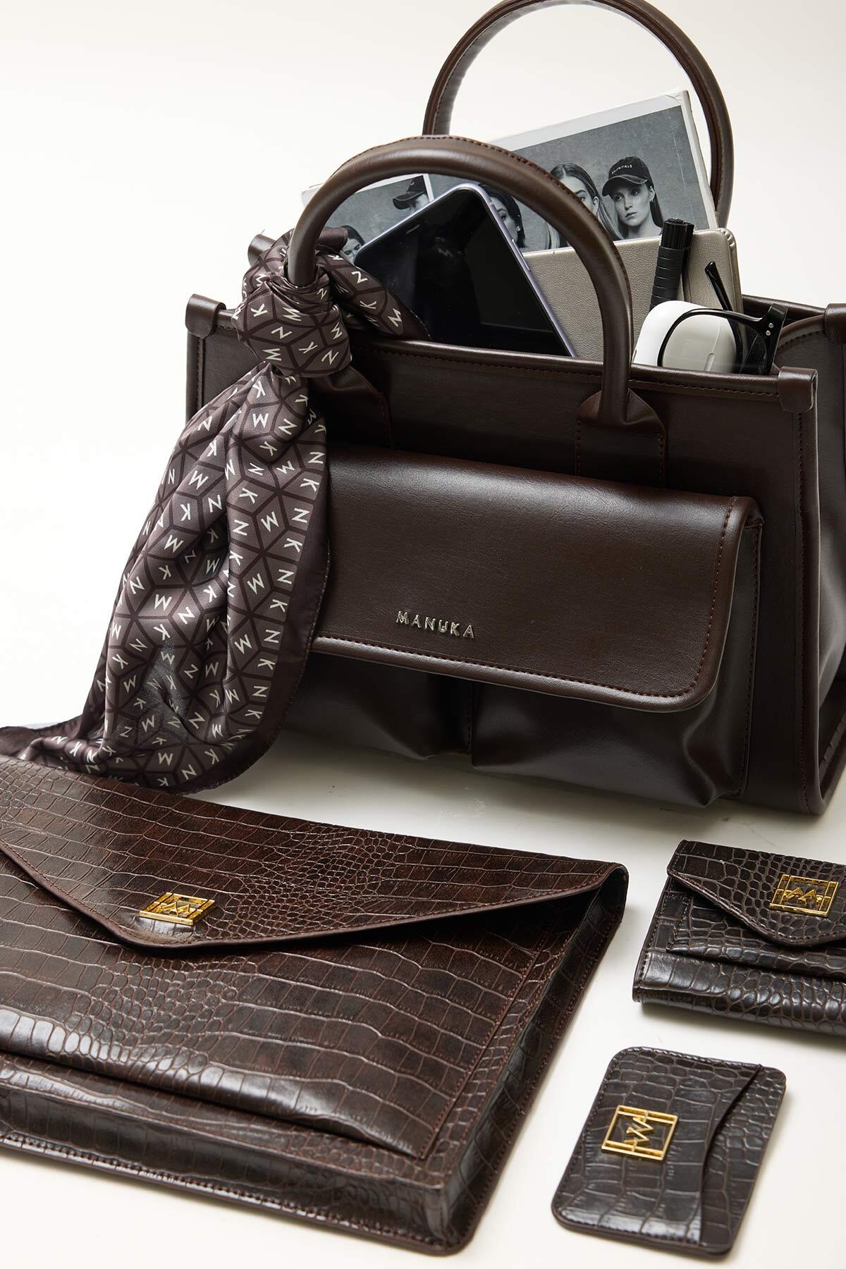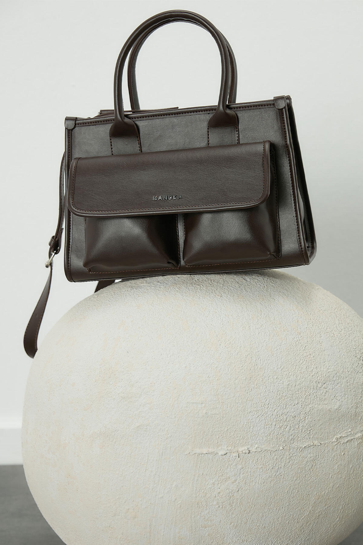 Crafted from high-quality faux leather, this bag boasts a luxurious look and feel without compromising on durability. The adjustable shoulder strap and additional top handle offer versatility in carrying options, allowing you to wear it comfortably on your shoulder or carry it by hand. Adorned with our signature Manuka logo, this bag exudes sophistication and elegance. The lined interior features a small pocket for keeping smaller items organized, while the two front gusseted pockets provide additional storage space for your essentials. With its convenient snap button closure, this bag keeps your belongings secure while adding a stylish touch to any outfit.