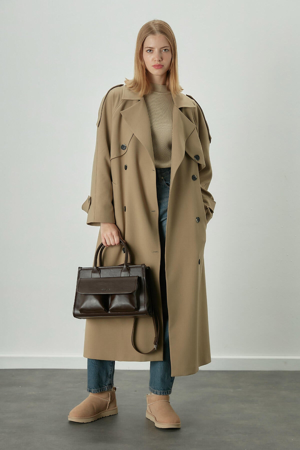 Wide Pocket Shoulder Bag Brown