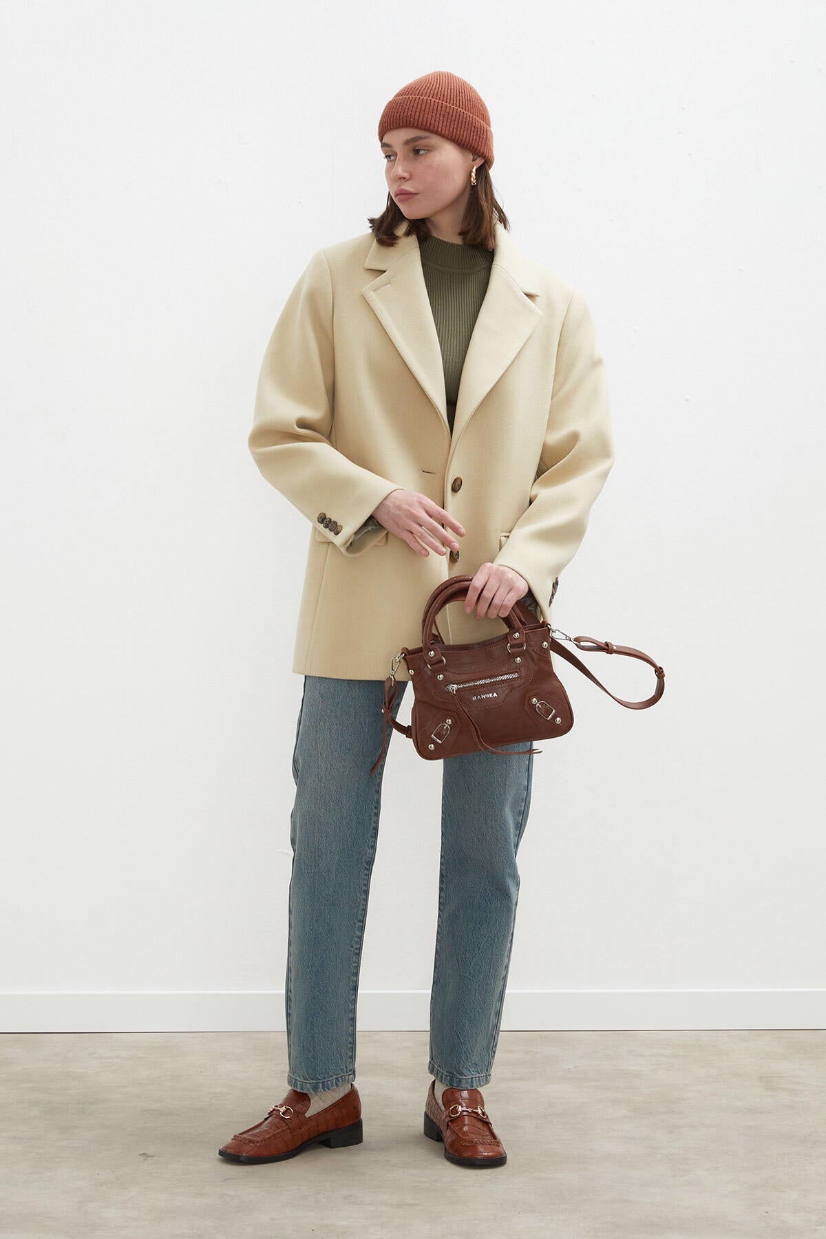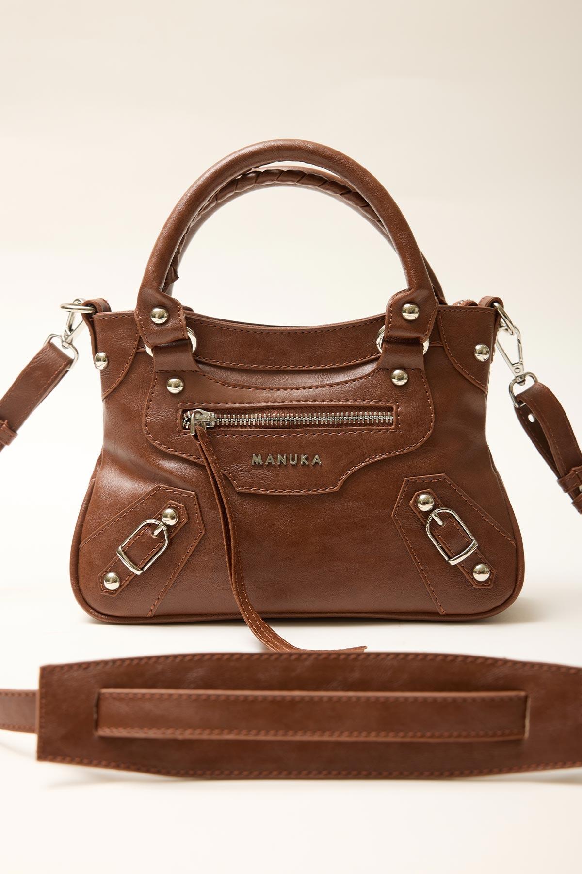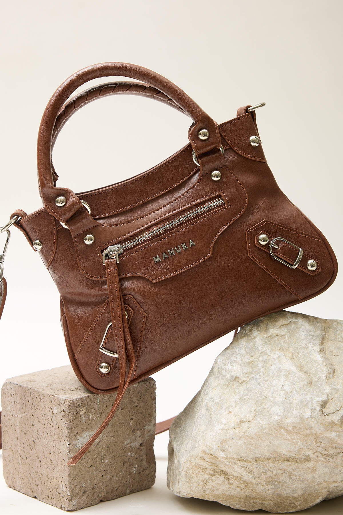 Crafted from high-quality faux leather, this bag exudes sophistication and style while remaining cruelty-free. The adjustable crossbody strap and additional top handle offer versatility in carrying options, allowing you to wear it comfortably on your shoulder or carry it by hand. The front belt buckle detail adds a touch of chic charm to the design, elevating its aesthetic appeal. With its secure zipper closure, this bag keeps your belongings safe while adding a stylish accent to any ensemble. The lined interior features a convenient pocket for keeping your essentials organized and easily accessible.