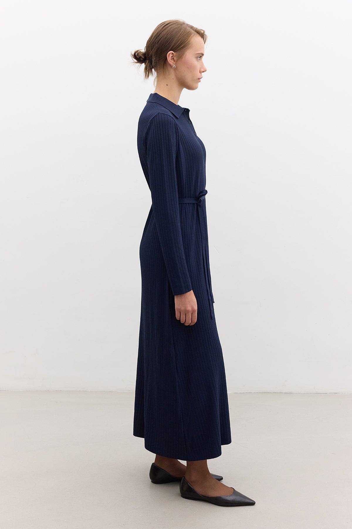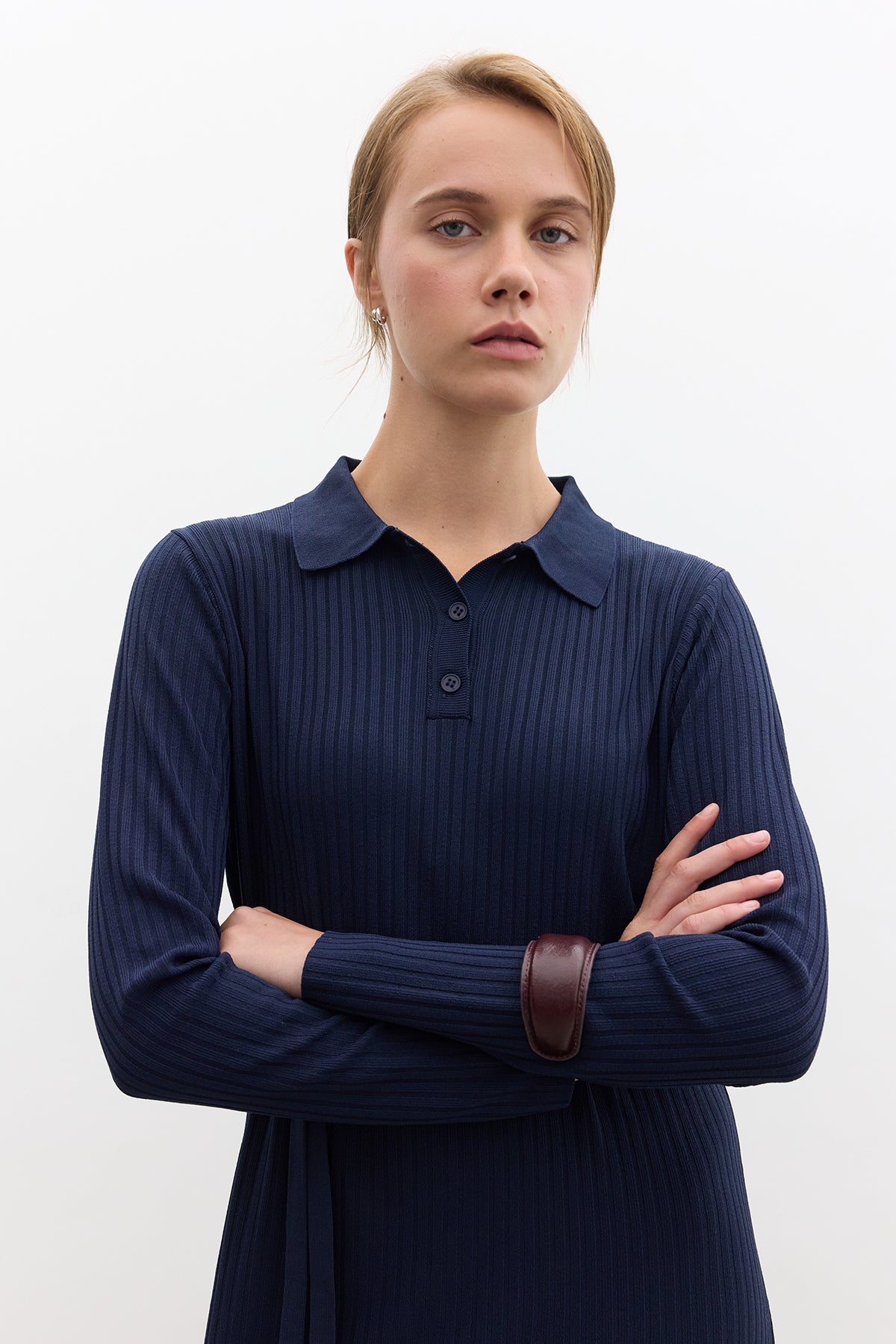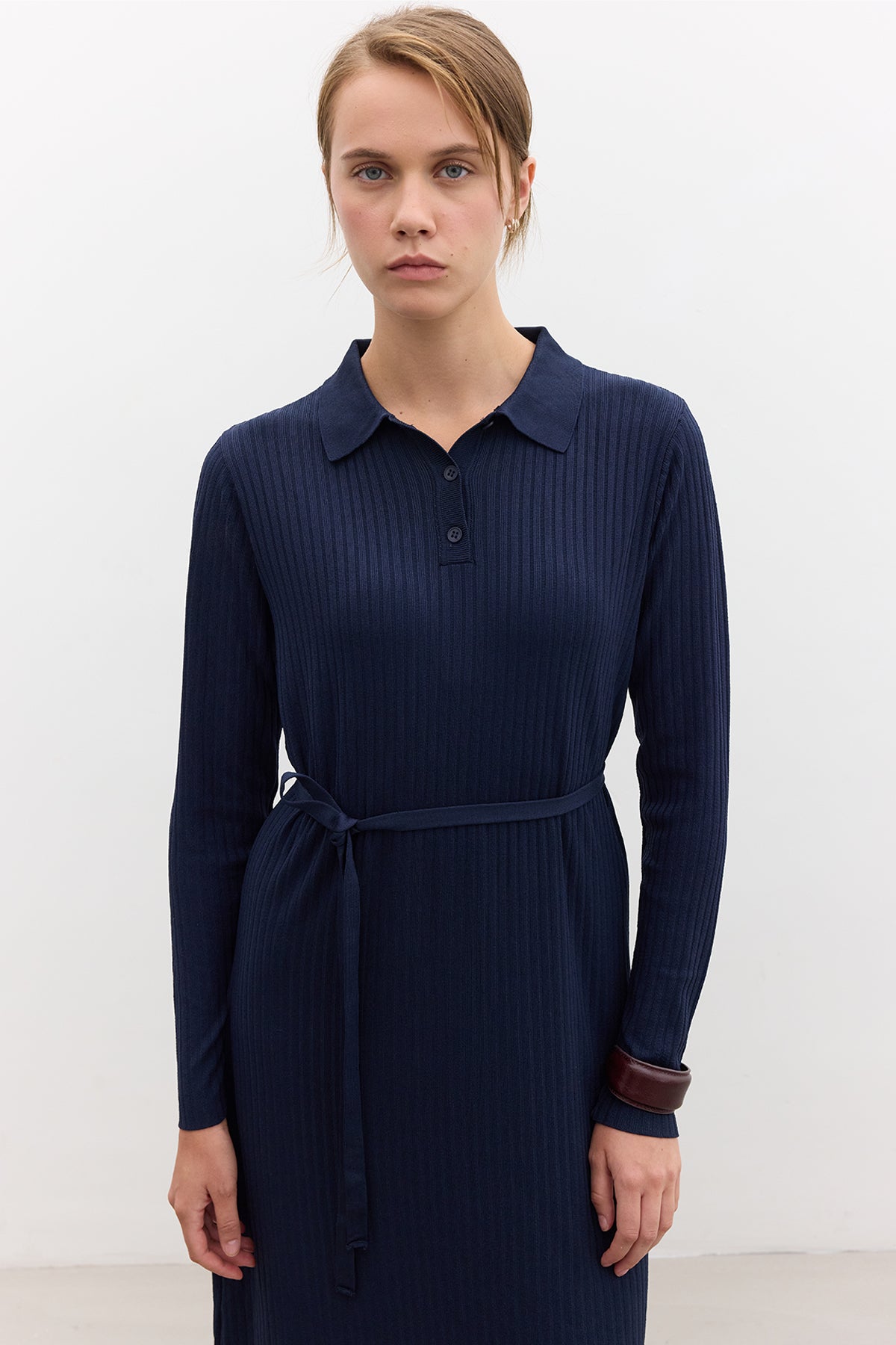 Collared Knit Dress Navy Blue